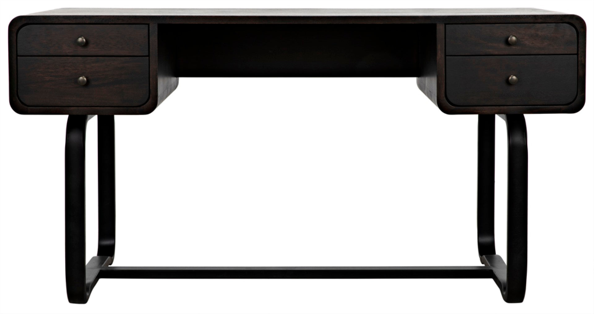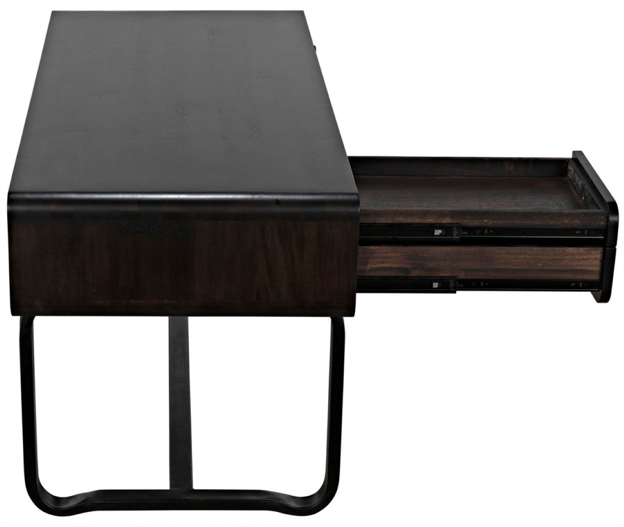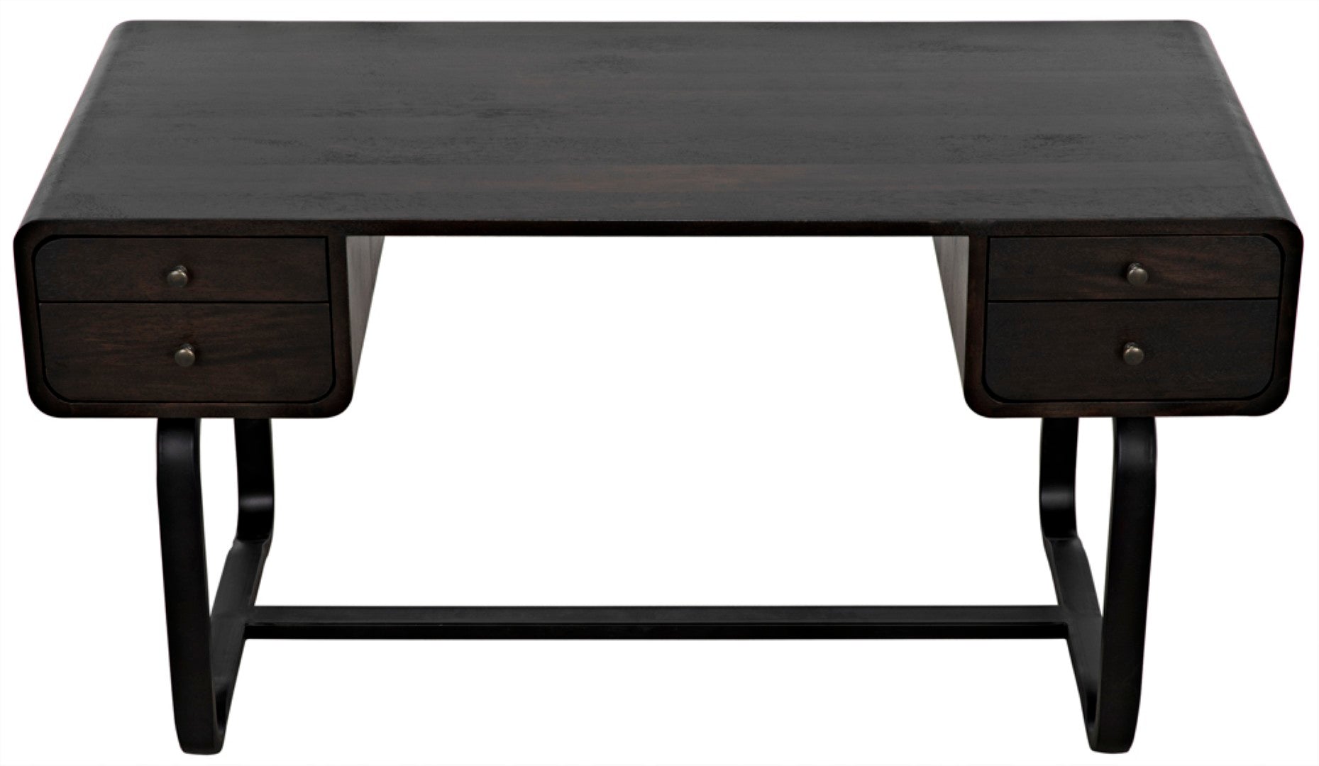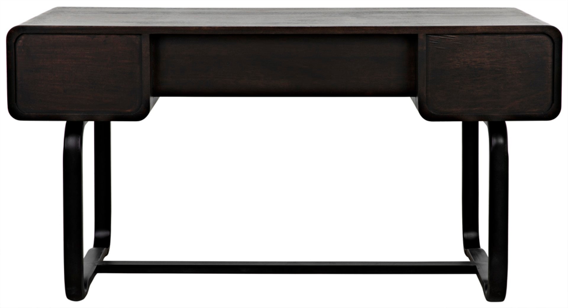 Bring modern industrial elegance to your workspace with the Voltes Desk. The rich warmth of ebony walnut contrasts with a matte black iron base to create a balanced, refined silhouette—curved edges and softly rounded legs add a sculptural touch while remaining highly functional for everyday use.