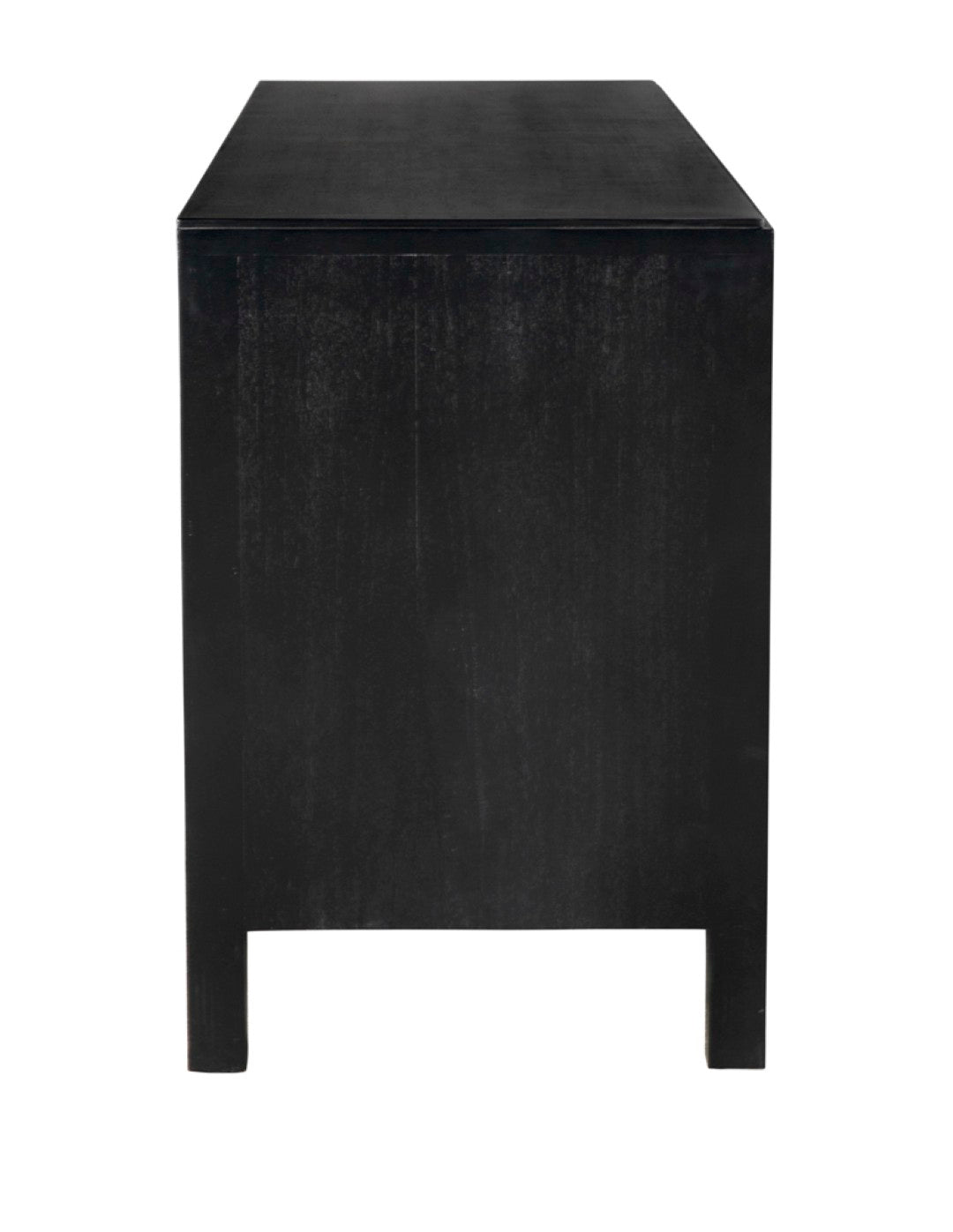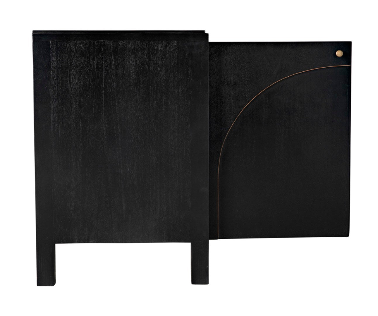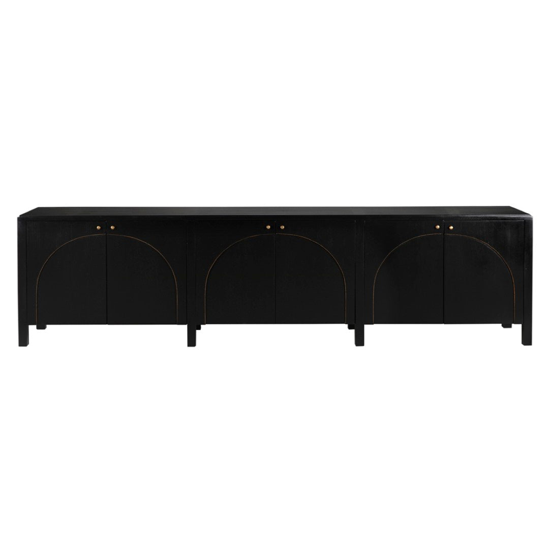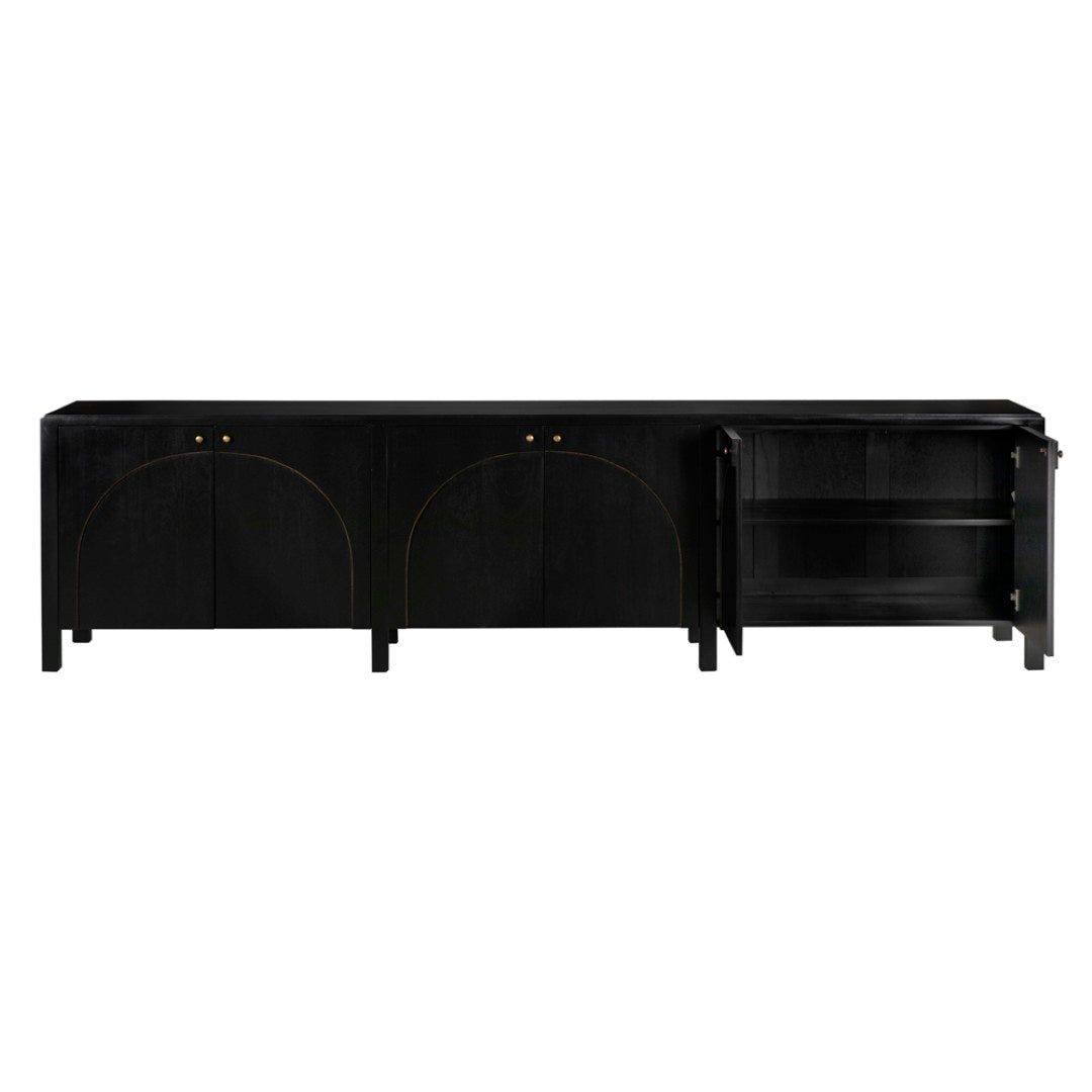 Elevate your dining room or entryway with the Weston Sideboard — a refined blend of classic craftsmanship and contemporary lines. Artisan-made from solid mahogany, its hand-rubbed black finish and light brown trim accentuate the arched door detailing and brass pulls, creating a statement piece that is both elegant and functional. Ideal for storing dinnerware, linens, or serving essentials, this sideboard brings lasting quality and timeless style to any distinguished home.