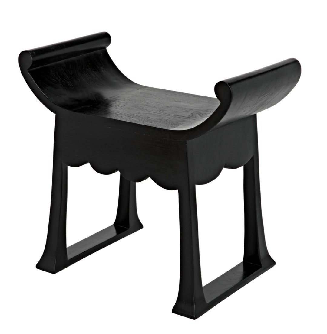 This handcrafted accent stool combines Asian-inspired form with modern simplicity, offering both decorative appeal and functional versatility for contemporary interiors. Its rich charcoal-black finish and sculptural silhouette make it an elegant side table, extra seating, or display pedestal that complements living rooms, bedrooms, and entryways.