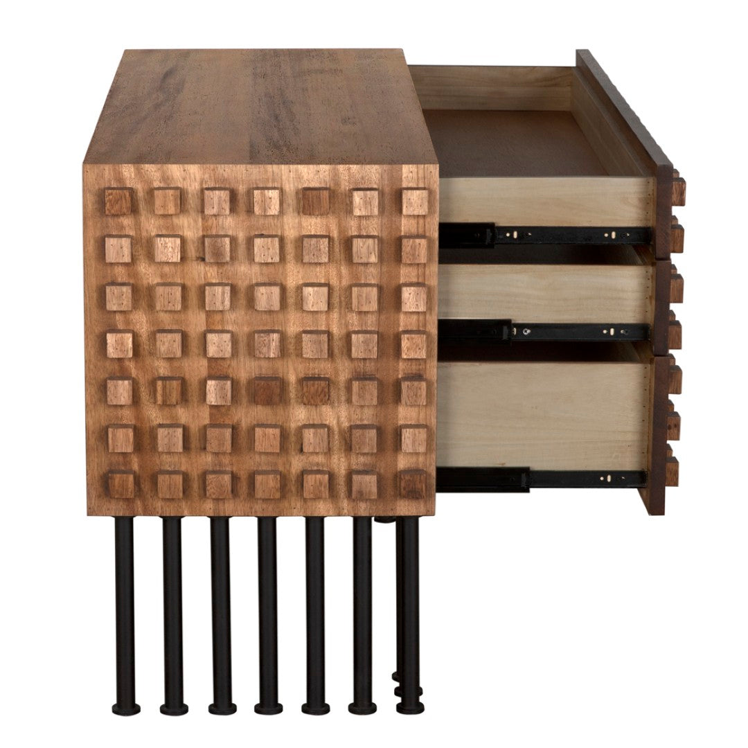 Elevate your living or dining space with a sideboard that marries warm, natural walnut grain with clean industrial lines. The Wolfgang Sideboard balances form and function—its rich dark walnut finish and durable matte black iron base create a refined focal point while providing practical storage for dinnerware, media, or everyday essentials.