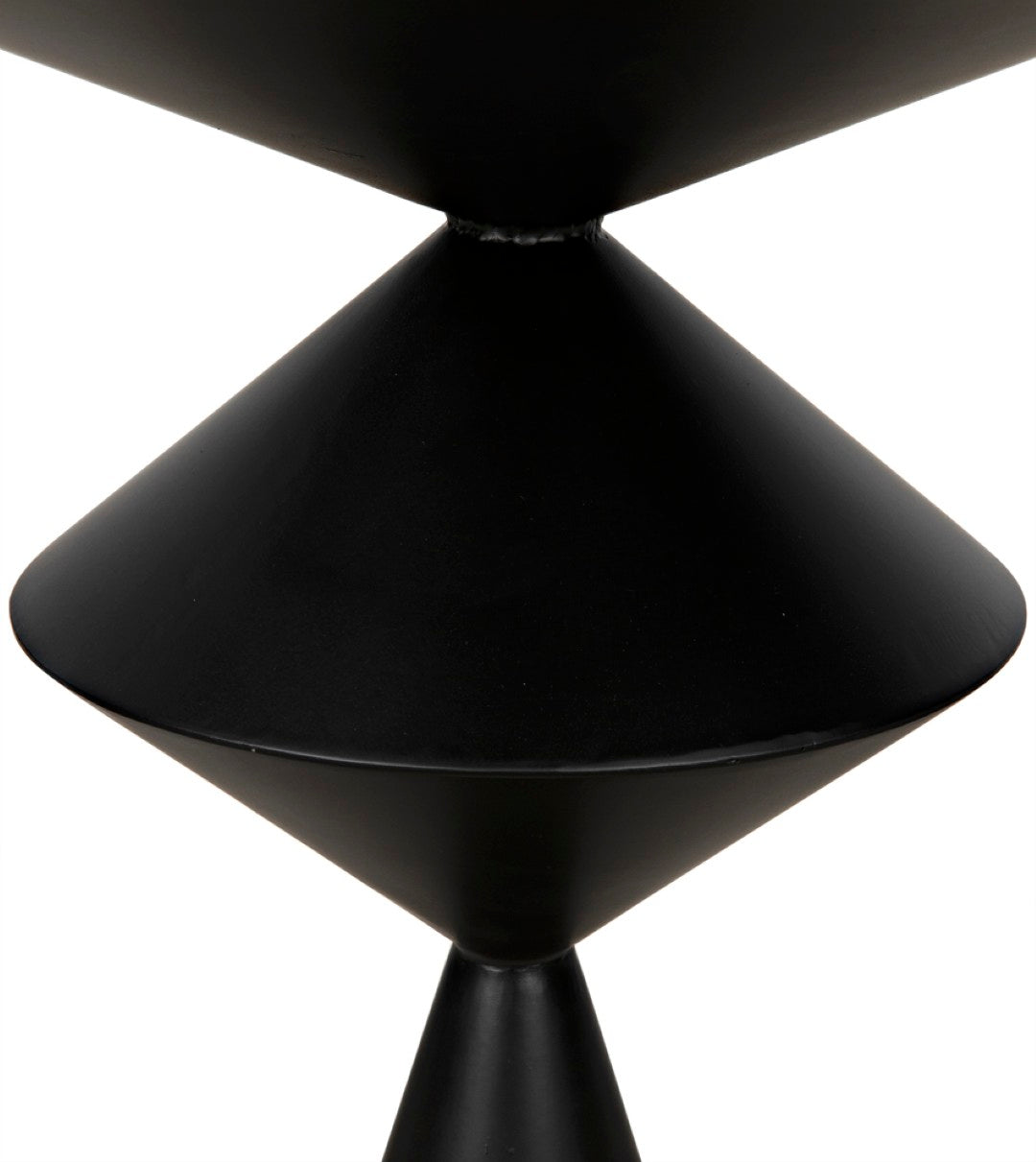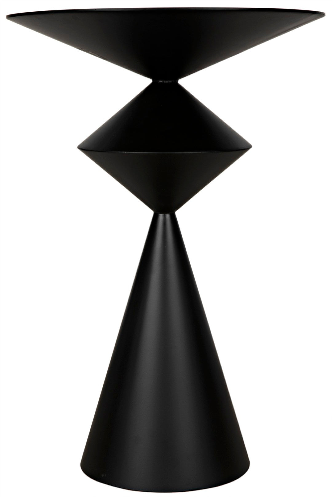 Bring bold, industrial style to your living space with this handcrafted iron side table. Its clean geometric silhouette and matte black finish add modern edge while remaining versatile enough to complement contemporary, loft, or rustic interiors. Built from durable iron and finished by hand, this accent piece balances form and function—ideal beside a sofa, chair, or bed.