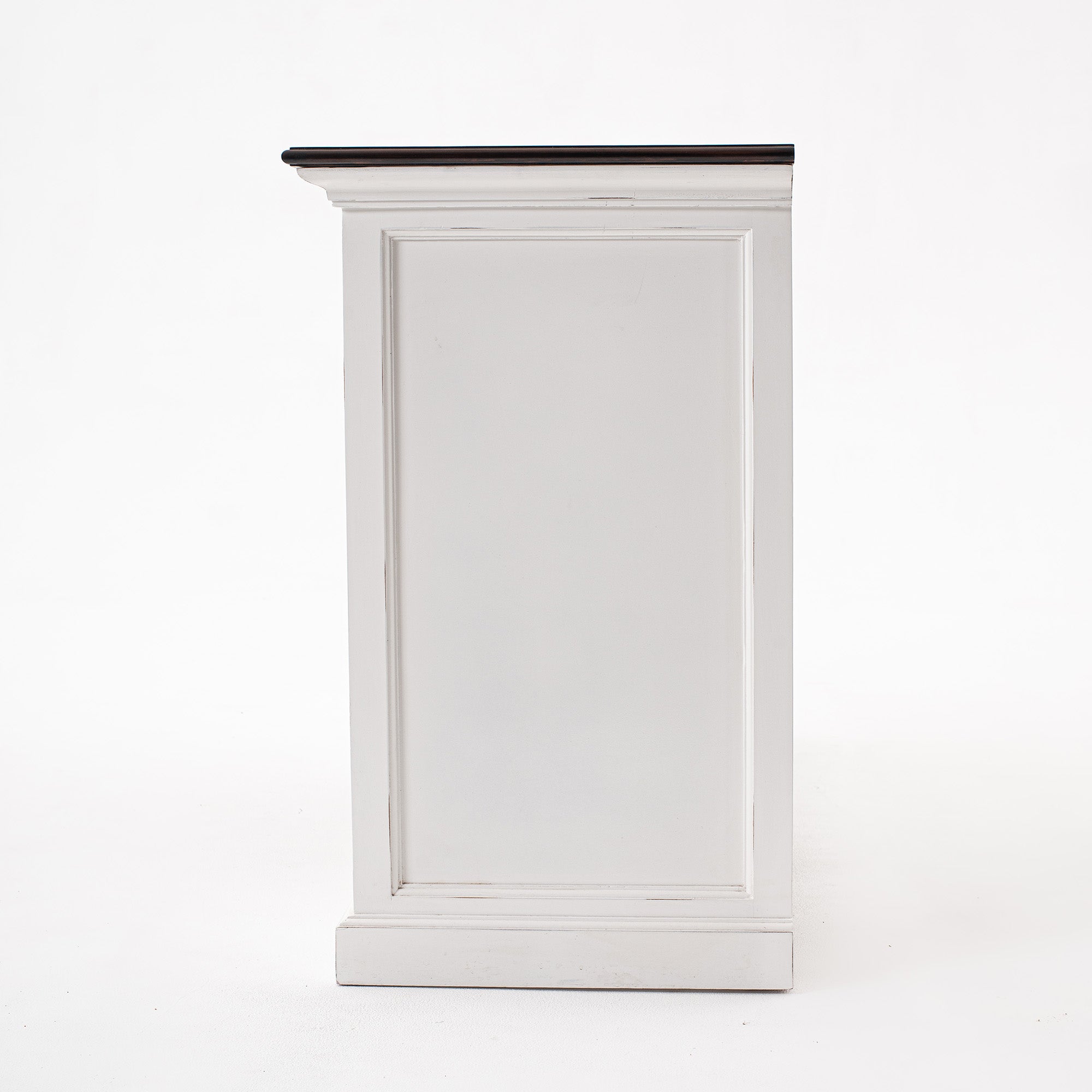 - Feature 6 Colour: White Distress Finish - The white distress finish uses a three layer application of the semi-gloss white paint which is then hand-sanded along the edges, contours and grooves, to expose the original wood and create a purposefully aged look.