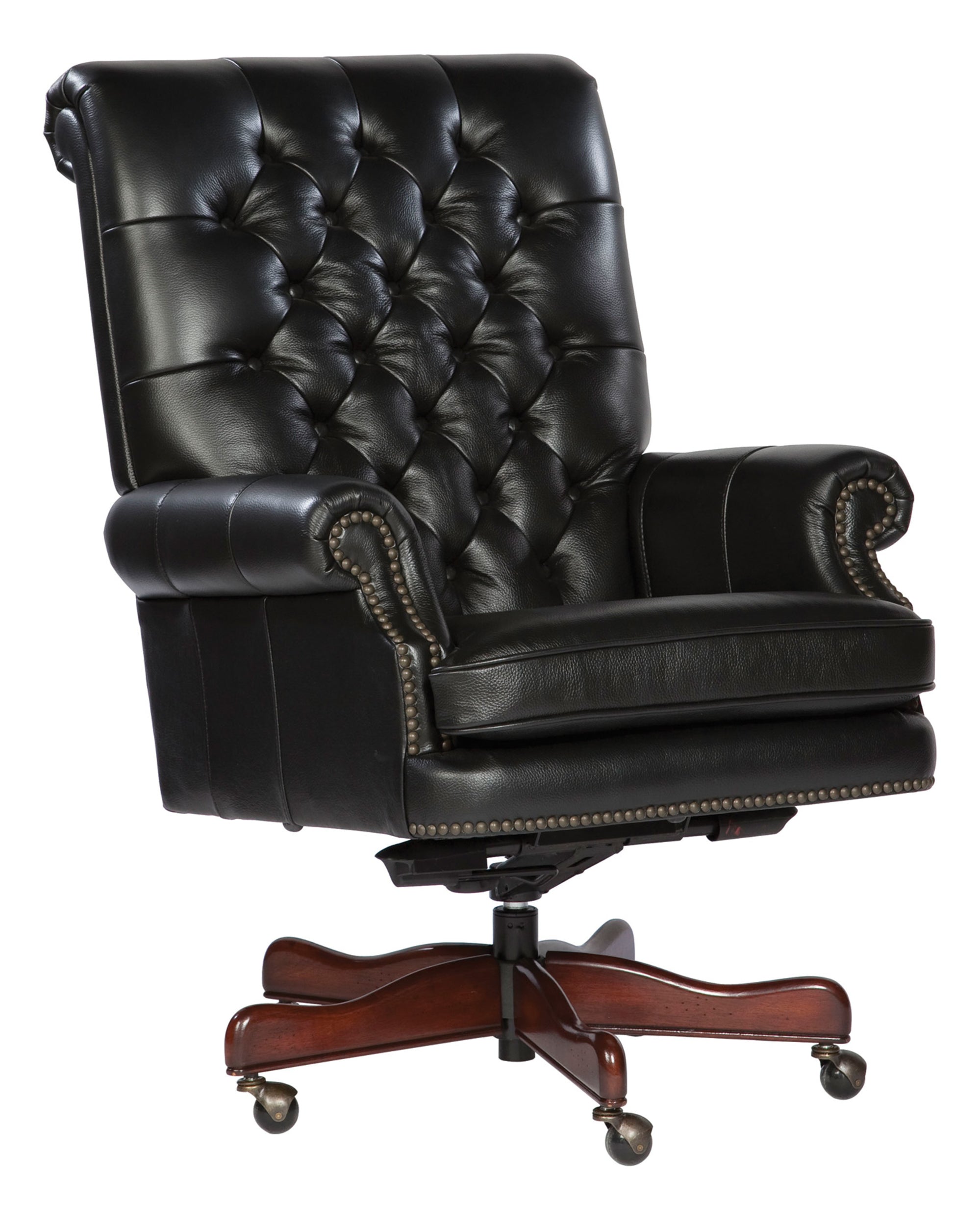 - Five-point wood base with casters.