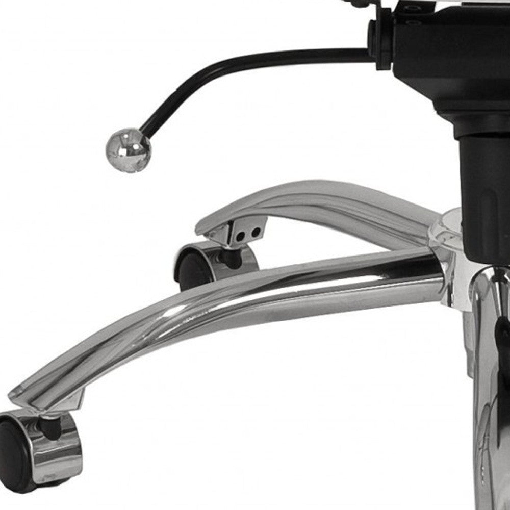 - Contemporary white conference chair with faux leather upholstery and swivel feature.