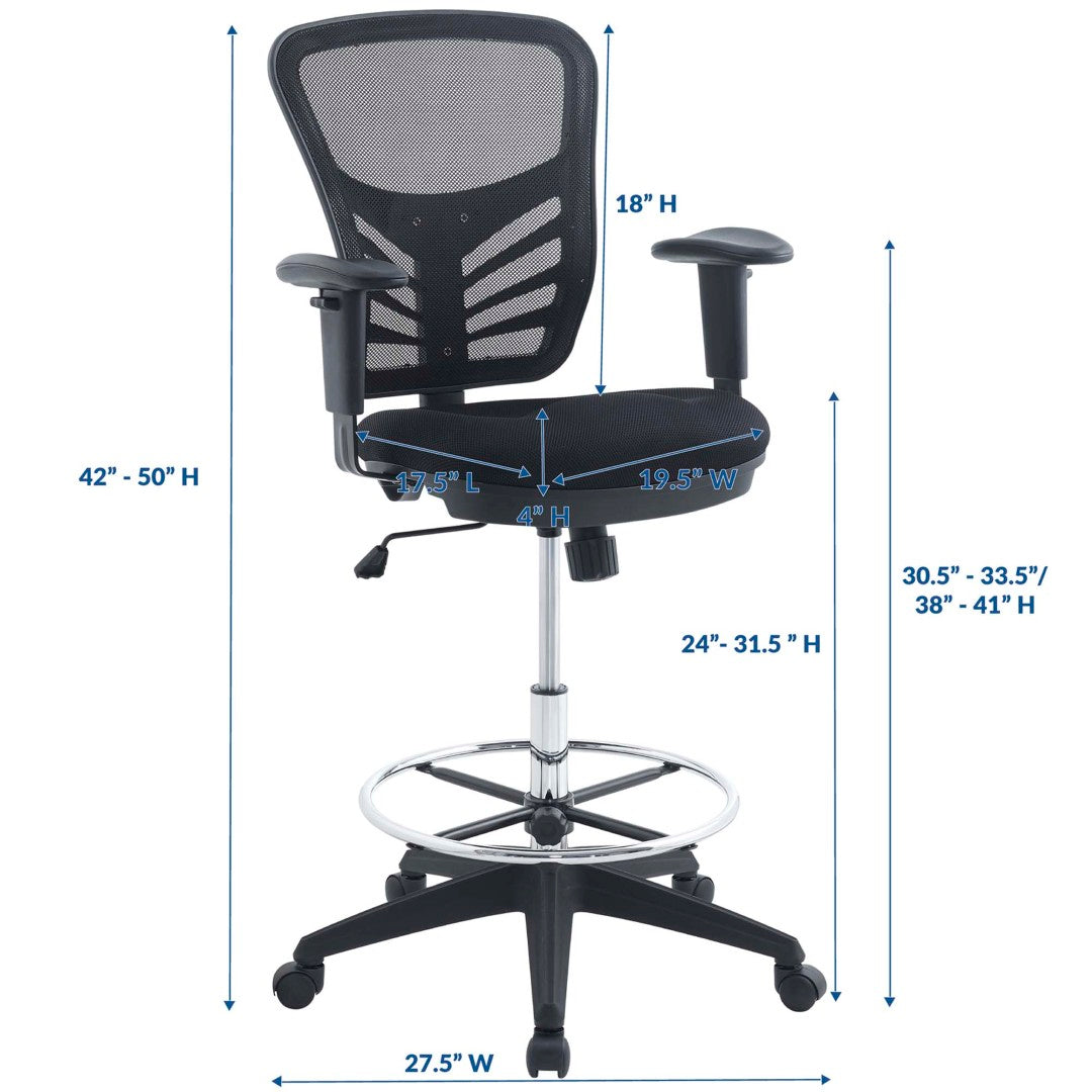 - Modern Drafting Stool Tall Drafting Chair Mesh Covered Sponge Seat Standing Desk Chair Tall Pneumatic Gas Cylinder Chrome Plated Steel Footring Assembly Required