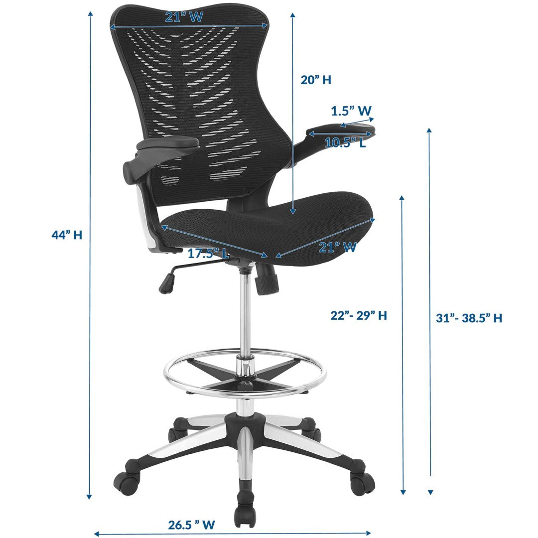 Energize your workspace with a drafting chair that combines modern style, adjustable support, and durable construction. The Charge Drafting Chair features a striking butterfly silhouette and ribbed upholstery for a contemporary look, while its ergonomic contours, padded mesh seat, and versatile armrests ensure comfortable long-term use at elevated workstations or standing desks.
