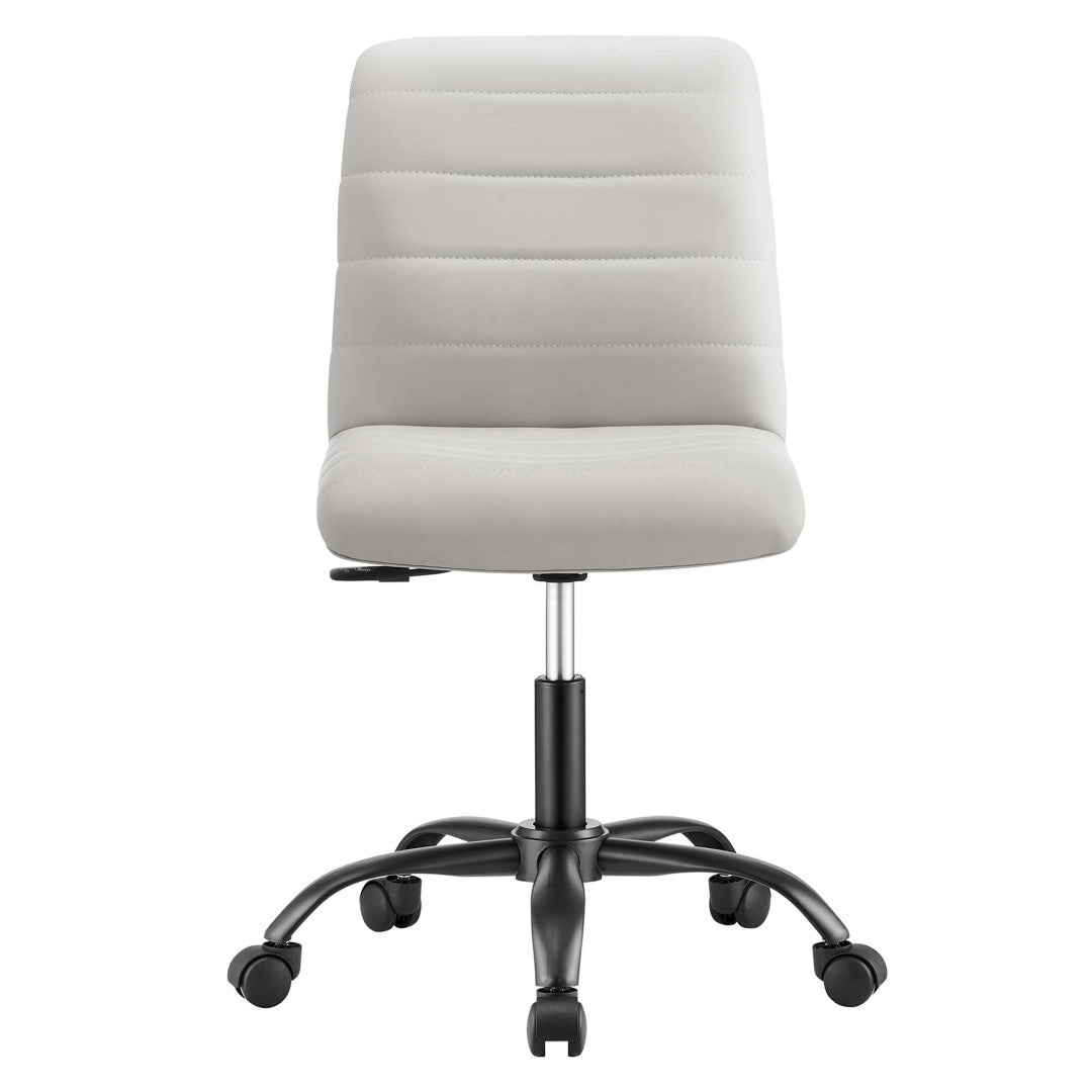 Bring modern sophistication and all-day comfort to your workspace with the Ripple Armless Vegan Leather Office Chair. Designed for conference rooms, home offices, and collaborative workspaces, this mid-back chair combines clean channel tufting and precise stitching with durable vegan leather and dense foam padding for a supportive, professional seating experience. Smooth mobility, reliable adjustability, and a compact footprint make it a versatile choice where style and function matter.