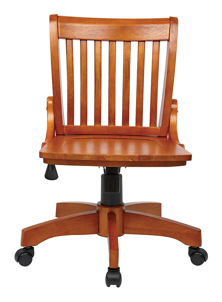 The all new Deluxe Wood Bankers Desk Chair by OSP Designs arrives in perfect form to provide you with a time-less style with modern day functionalities. Outfitted with a pressurized seat height adjustment and locking tilt control with customizable tension, this chair is a fully revamped version of the Banker Chair of the 19th century. With a durable wood and metal base ensconced with gorgeous finish, this chair is designed and constructed to withstand the test of time. Finished atop heavy duty dual wheel carpet casters, this chair makes the perfect addition to any home office.