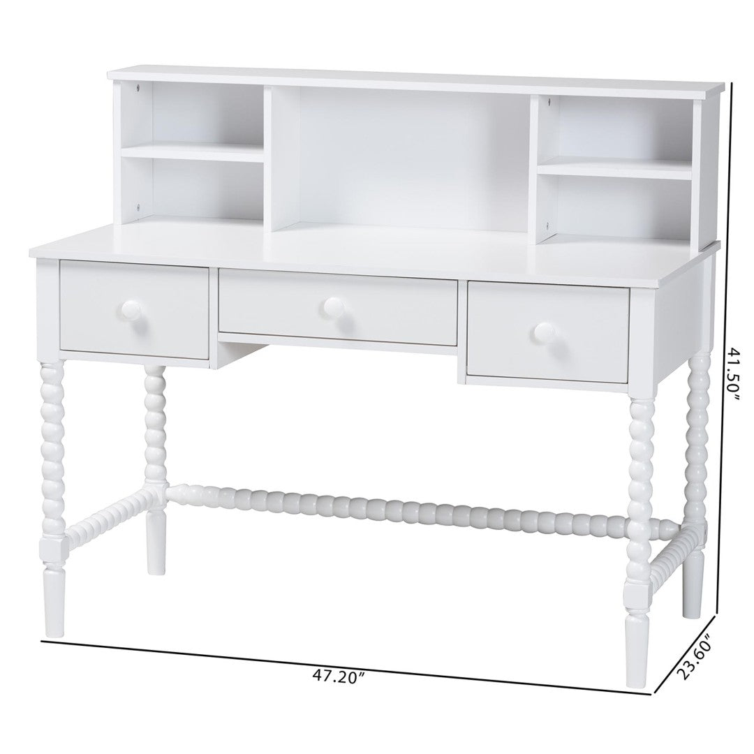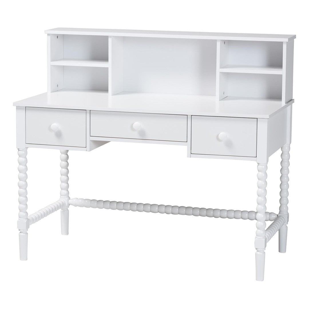 Bring classic charm and practical organization to your home office or bedroom with this elegantly crafted writing desk and hutch. The Archwood features sculptural turned bobbin details, a spacious work surface, and a thoughtful arrangement of cubbies and drawers that keep supplies and personal items neatly stowed while maintaining a light, airy presence.