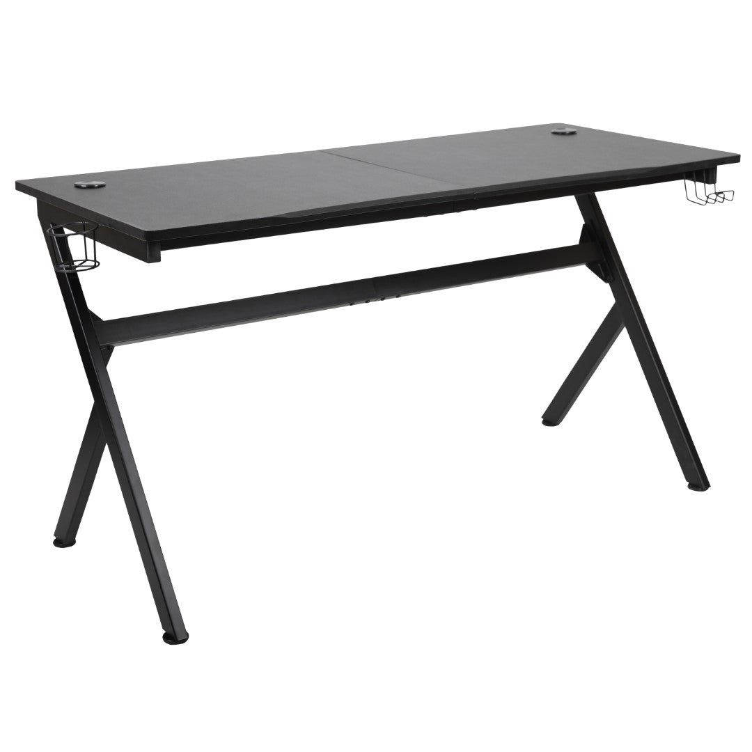 The desk features 2 Cable Management Holes for organizing cords neatly, maintaining a clutter-free environment. Its sturdy Black Powder Coated Steel Frame boasts a weight capacity of up to 110 lbs., ensuring durability and stability. The self-leveling Floor Glides keep your desk steady, even during the most intense gaming moments. This Computer Table Gaming Desk is a versatile addition suitable for various spaces such as home offices, bedrooms, dorm rooms, call centers, man caves, and she sheds. For the ultimate gaming experience, pair this desk with one of our gaming racing office ergonomic computer PC adjustable swivel chairs.