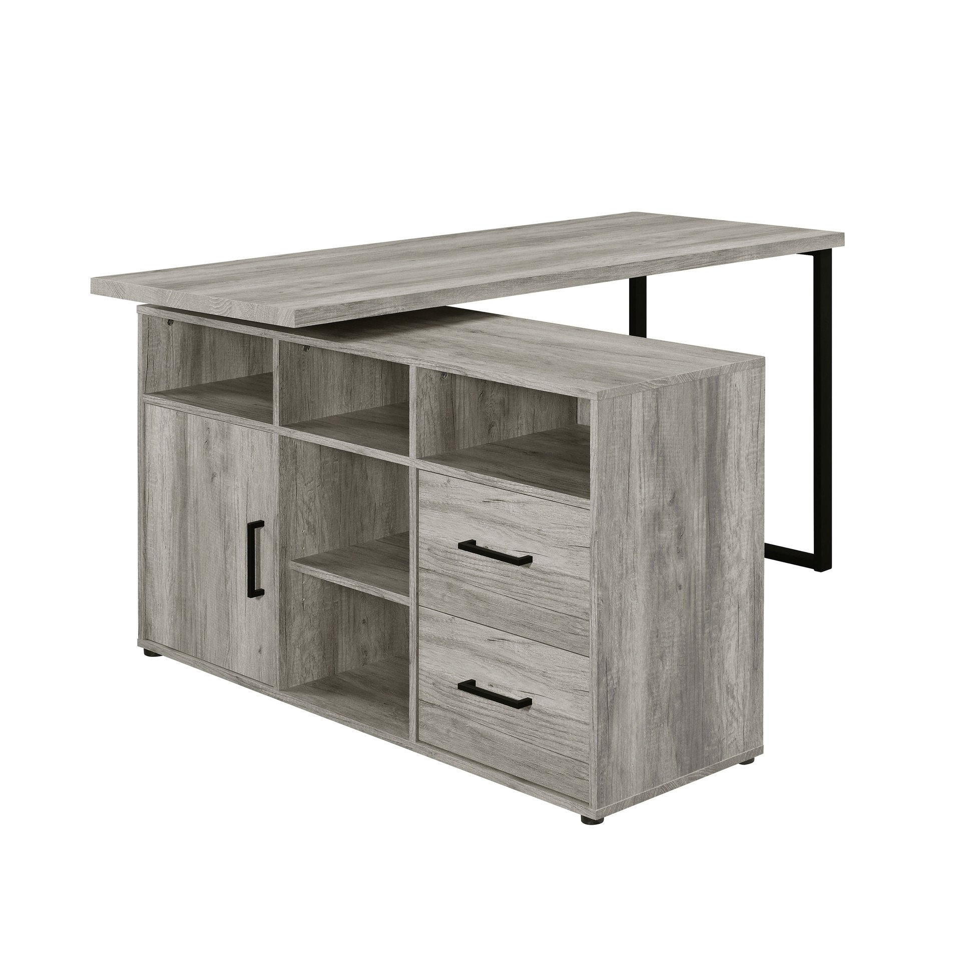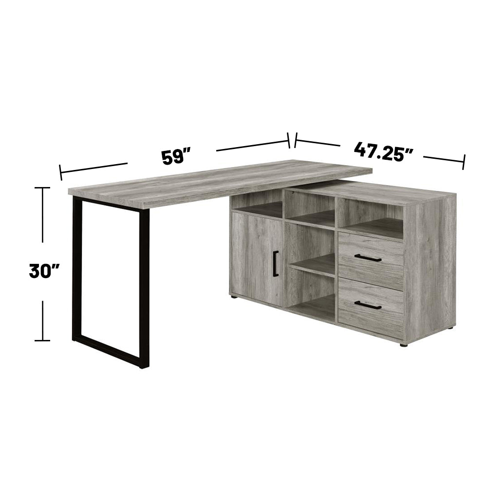 Transform your workspace with this 59-inch L-shape computer desk in Grey Driftwood — a stylish blend of rustic warmth and modern geometric design that creates an open, organized, and functional home office. Built for productivity and display, it offers ample surface area for dual monitors or a laptop and peripherals, plus smart storage solutions to keep essentials within reach while maintaining an airy, uncluttered look.