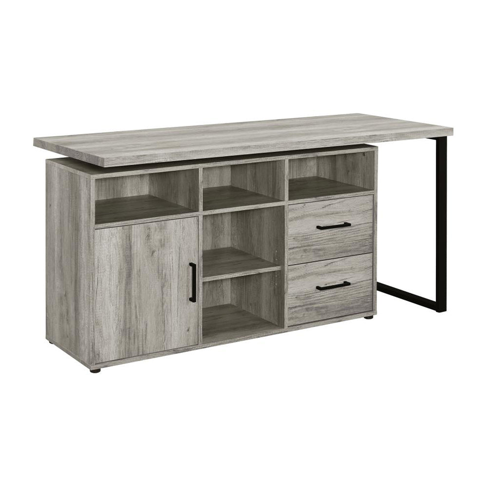 - Design: Rustic grey driftwood finish paired with a sleek geometric metal frame for contemporary industrial appeal
