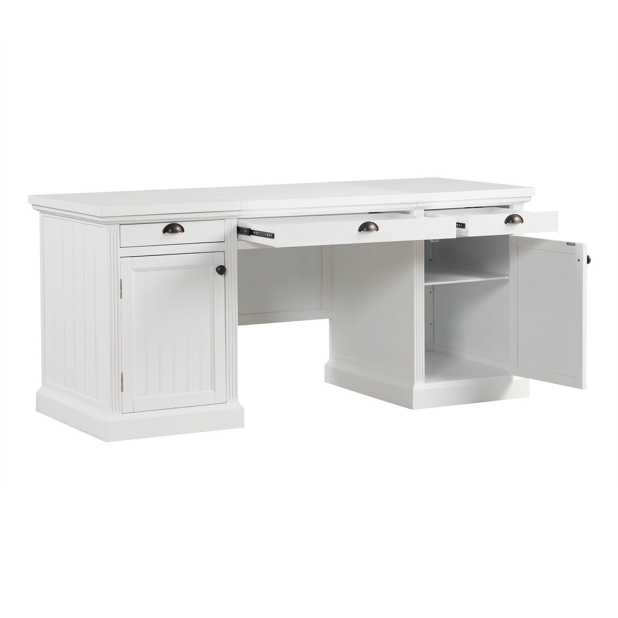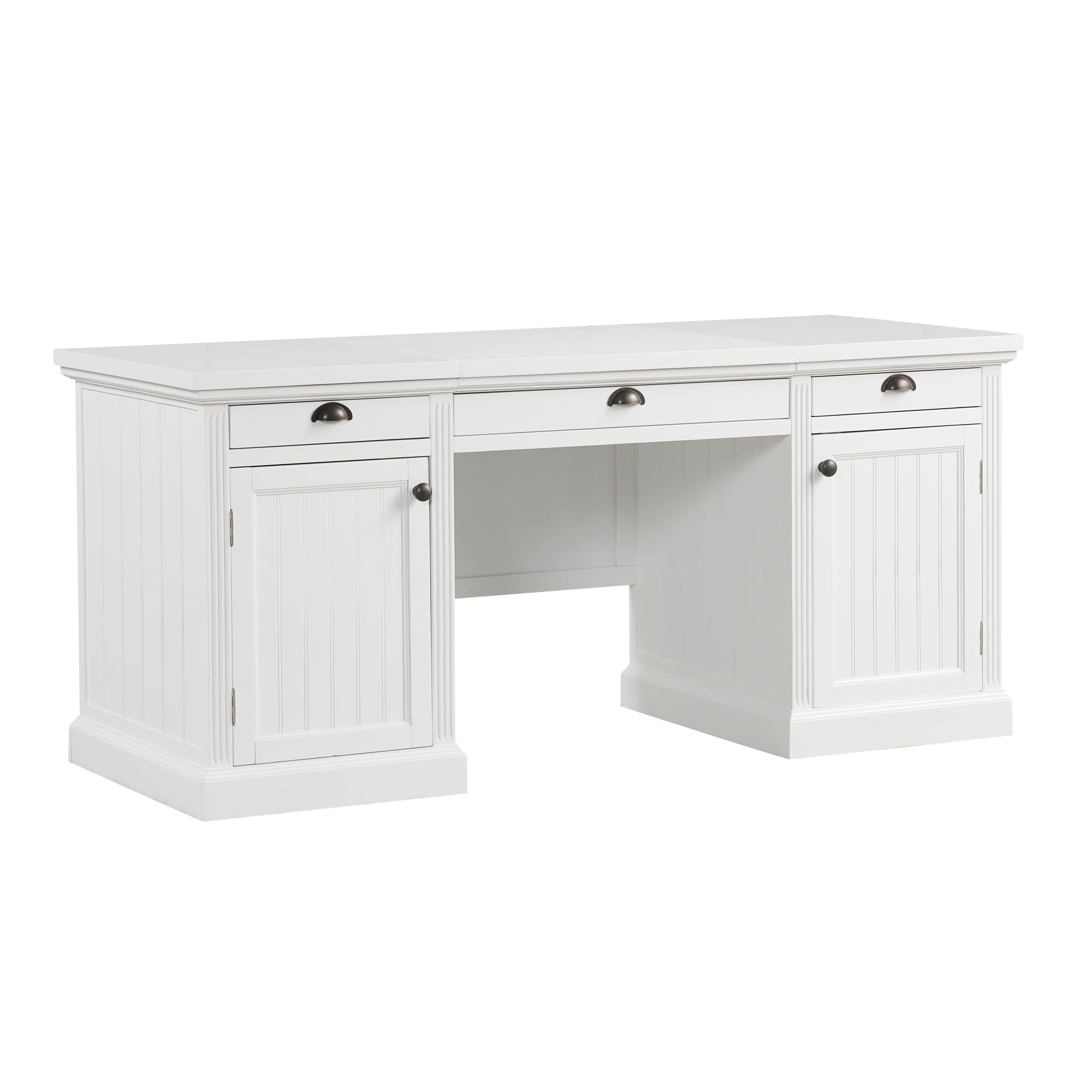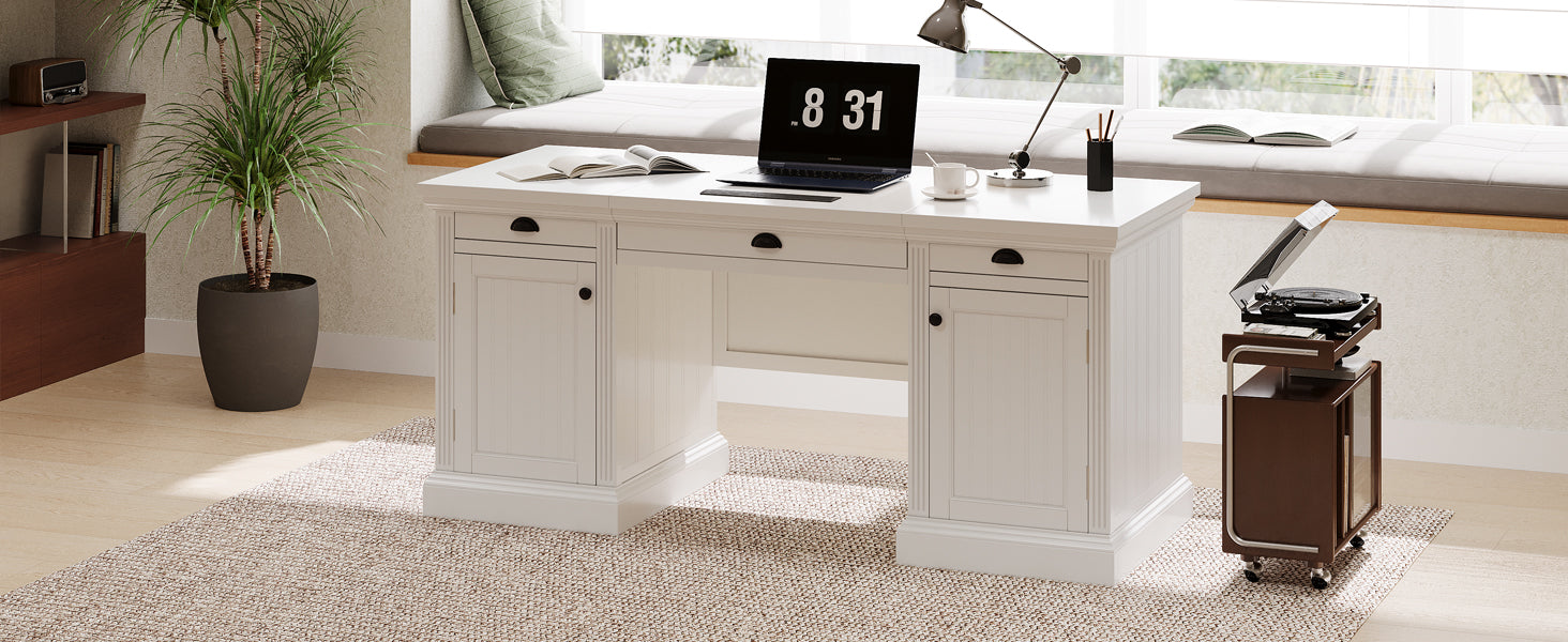 Bright, modern, and thoughtfully organized, this executive desk blends clean-lined contemporary style with practical storage to create an ideal workstation for home offices, studies, or living rooms. Constructed from sturdy MDF with solid-wood framing and a painted white finish, it offers a durable, easy-care surface and a broad desktop for productive work, study, or creative projects.