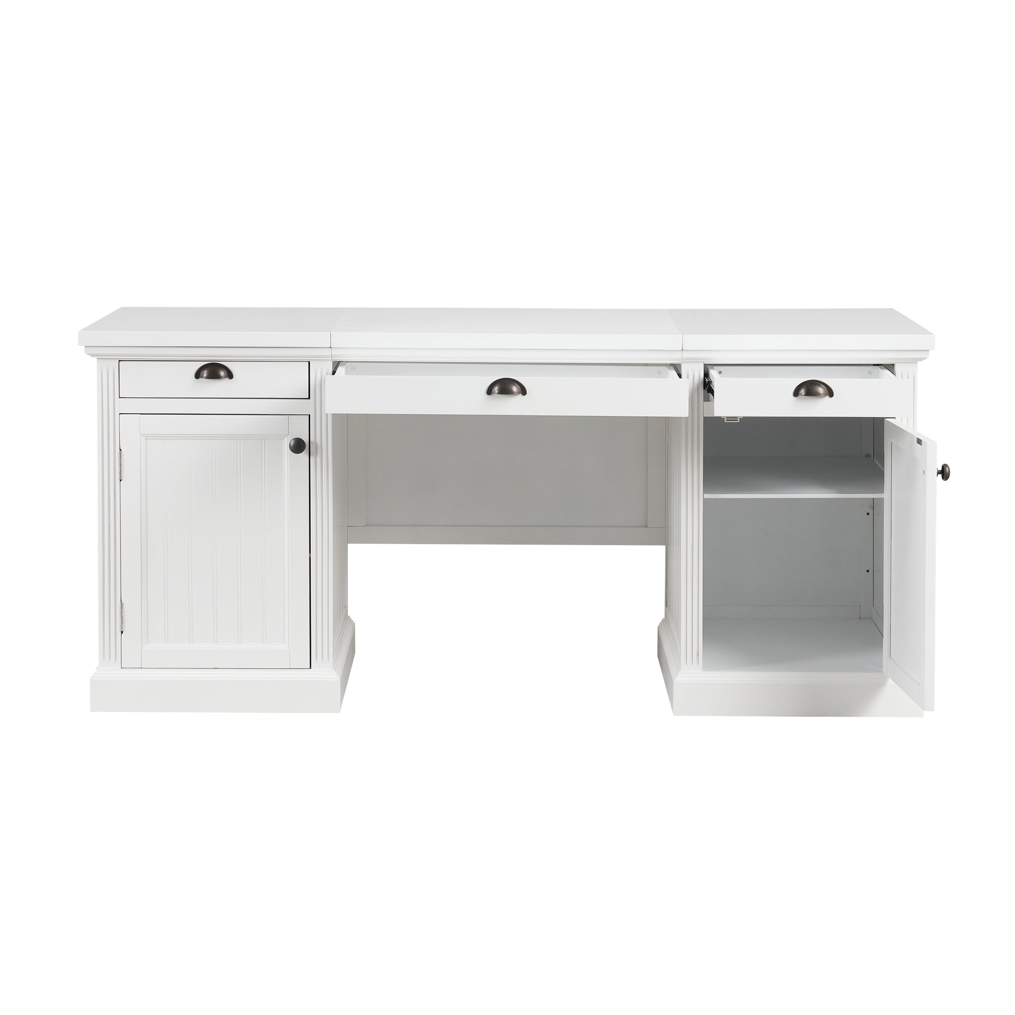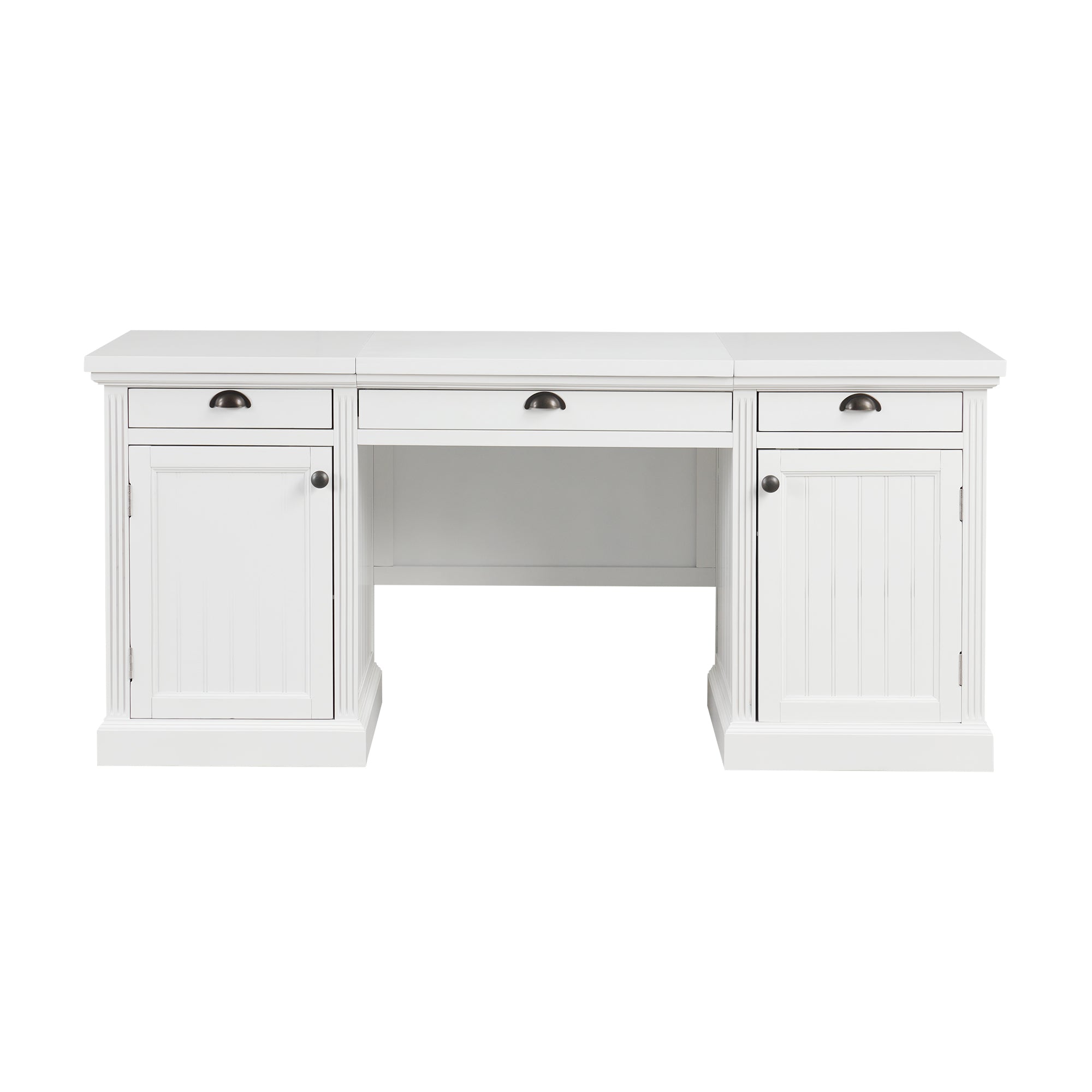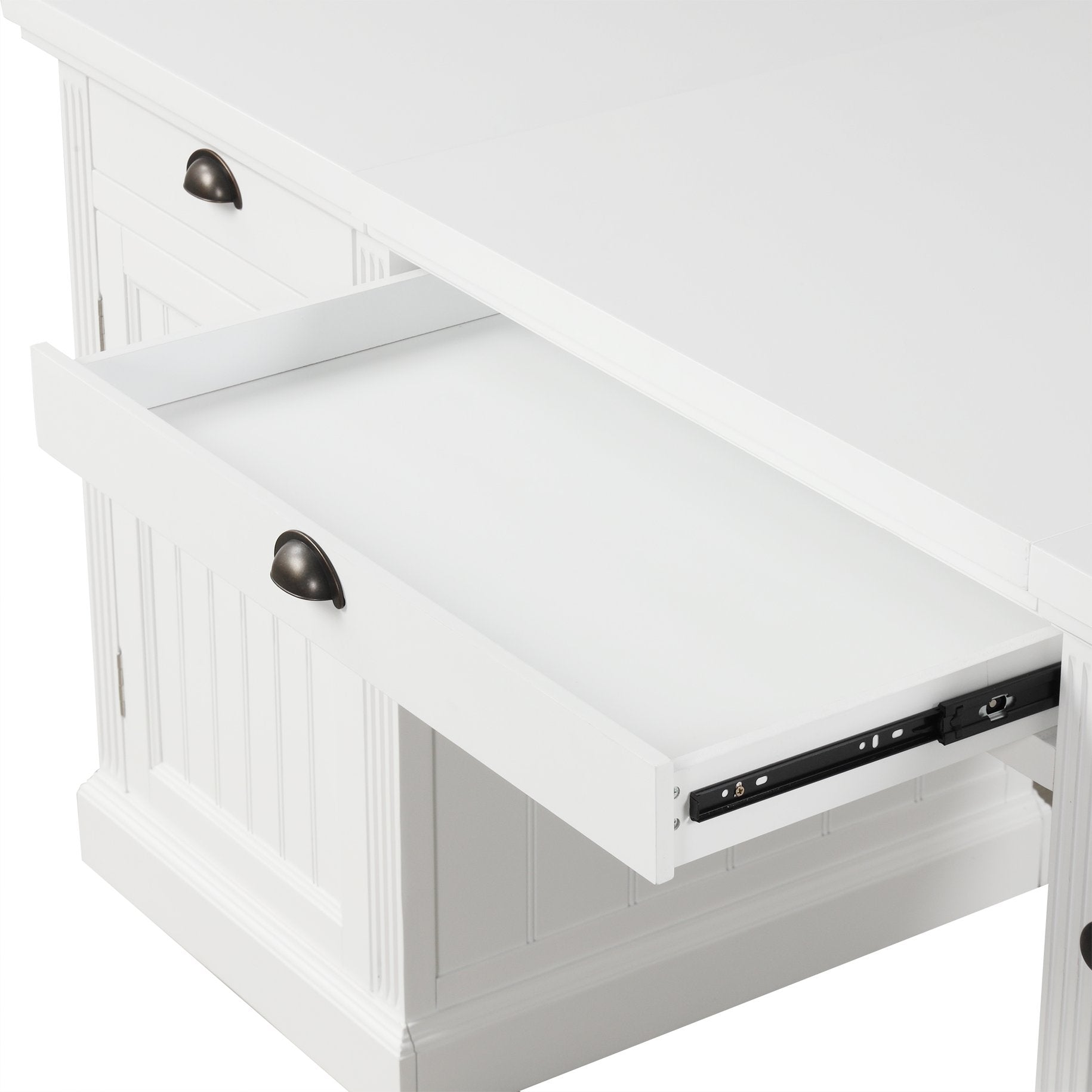 Bright, modern, and thoughtfully organized, this executive desk blends clean-lined contemporary style with practical storage to create an ideal workstation for home offices, studies, or living rooms. Constructed from sturdy MDF with solid-wood framing and a painted white finish, it offers a durable, easy-care surface and a broad desktop for productive work, study, or creative projects.