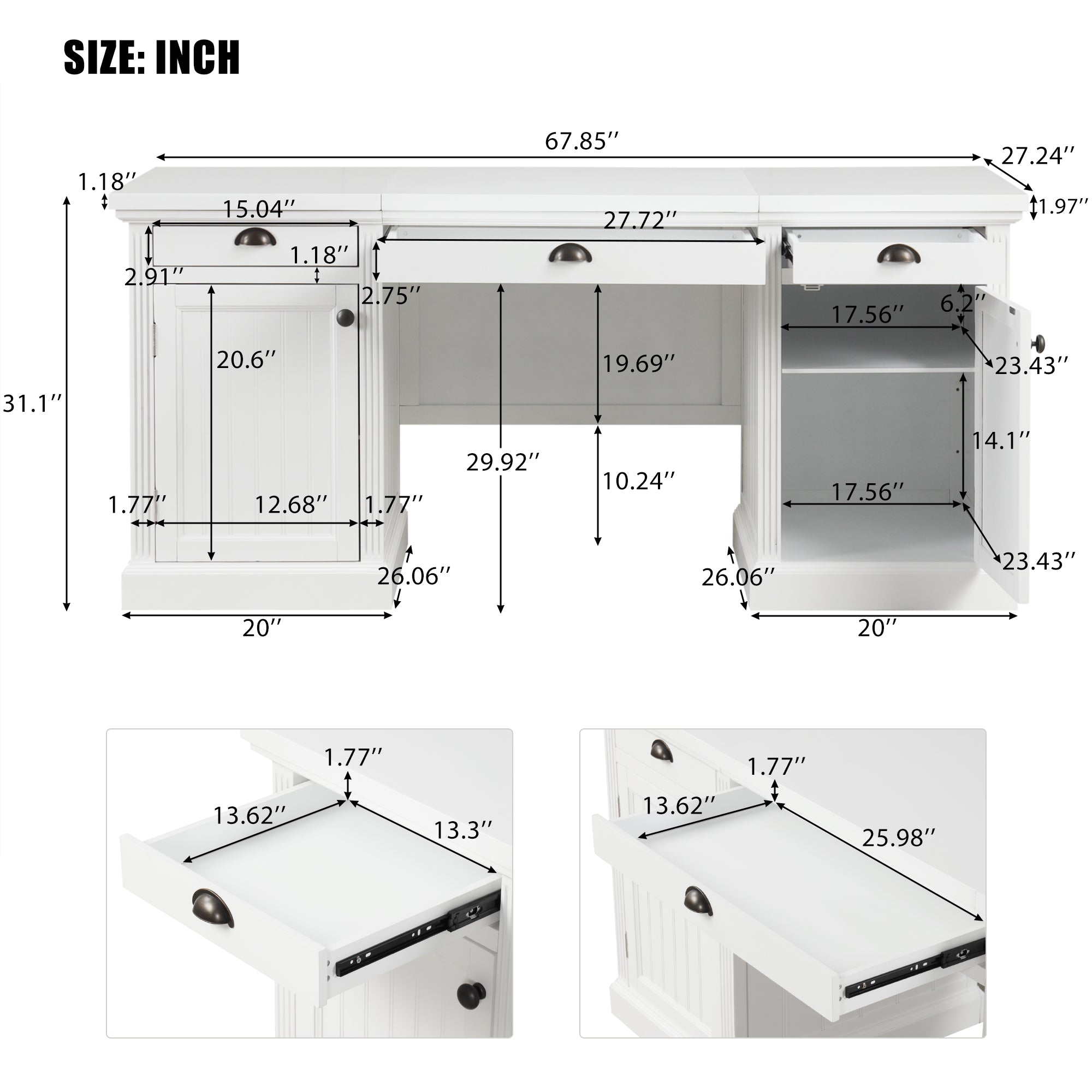 - This home office desk with storage offers ample storage solutions, including 2 cabinet and three drawers.The drawers provide enough space for notebooks, pens and stationery, and the cabinet has extra deep space to store items such as files, books, magazines and other office necessities.