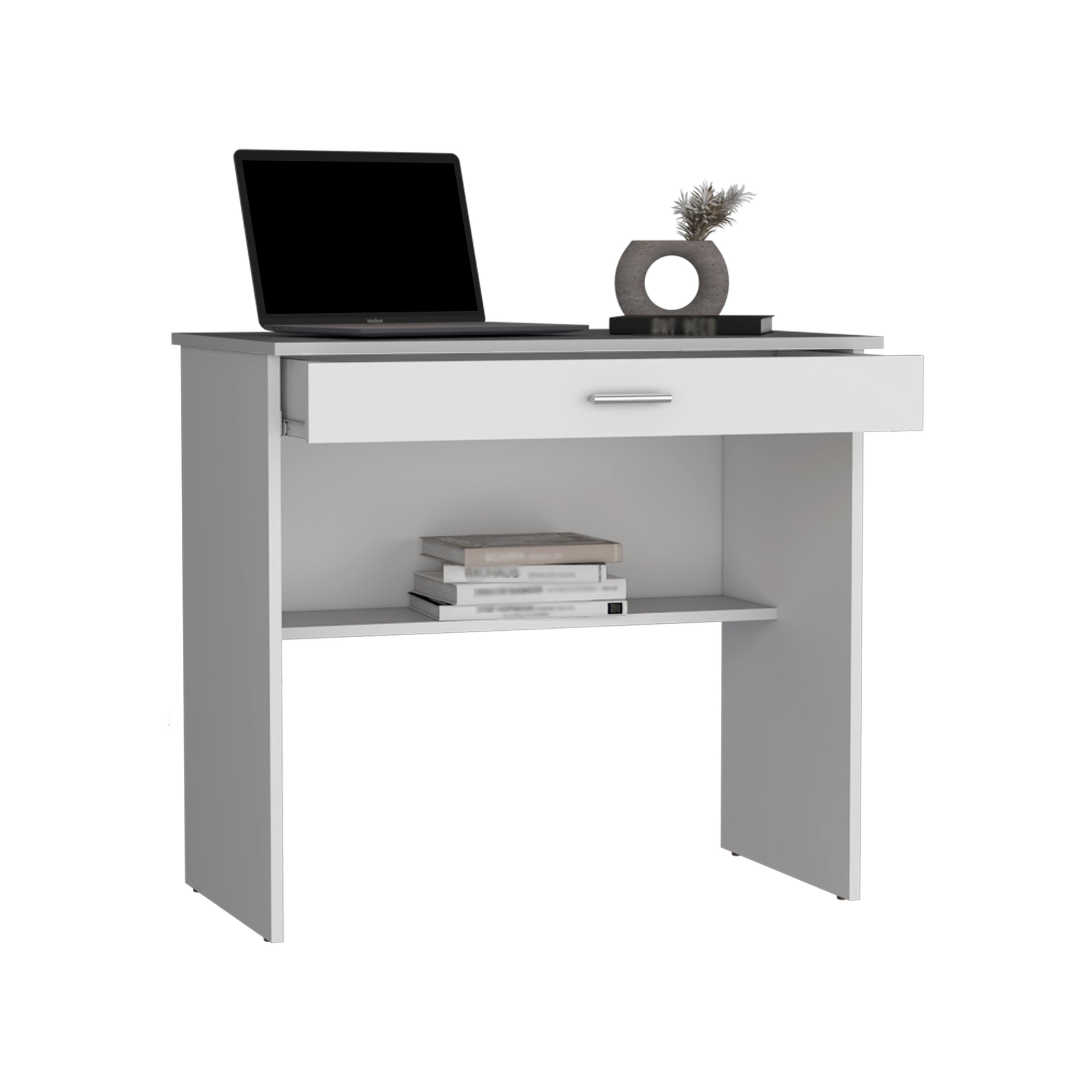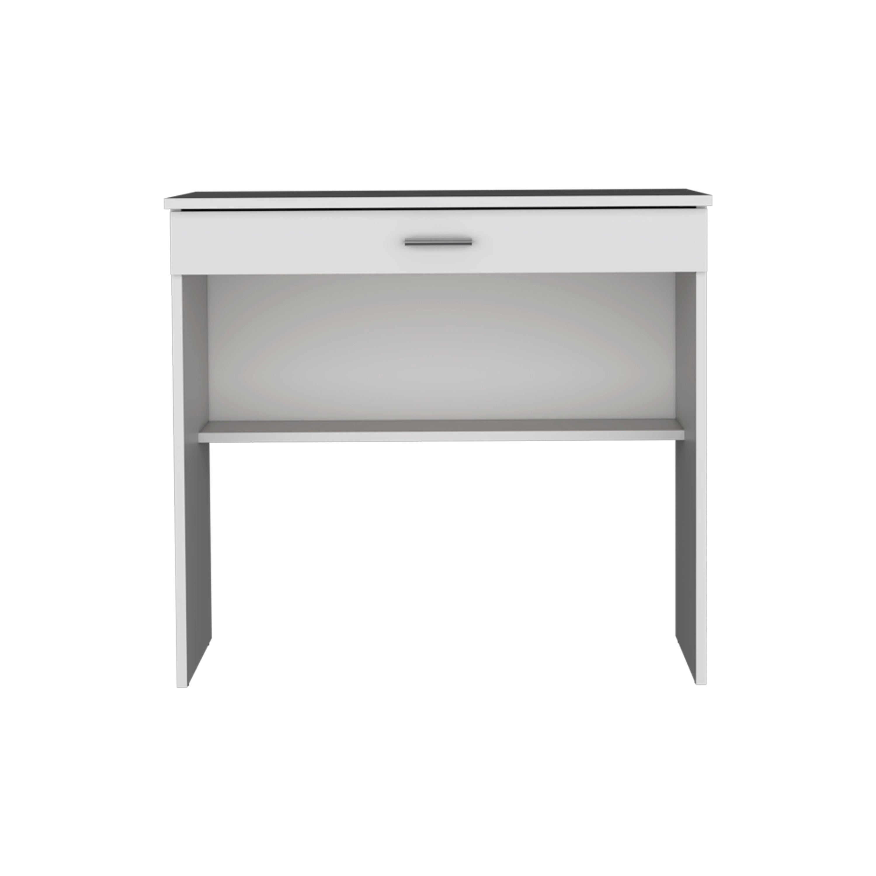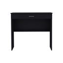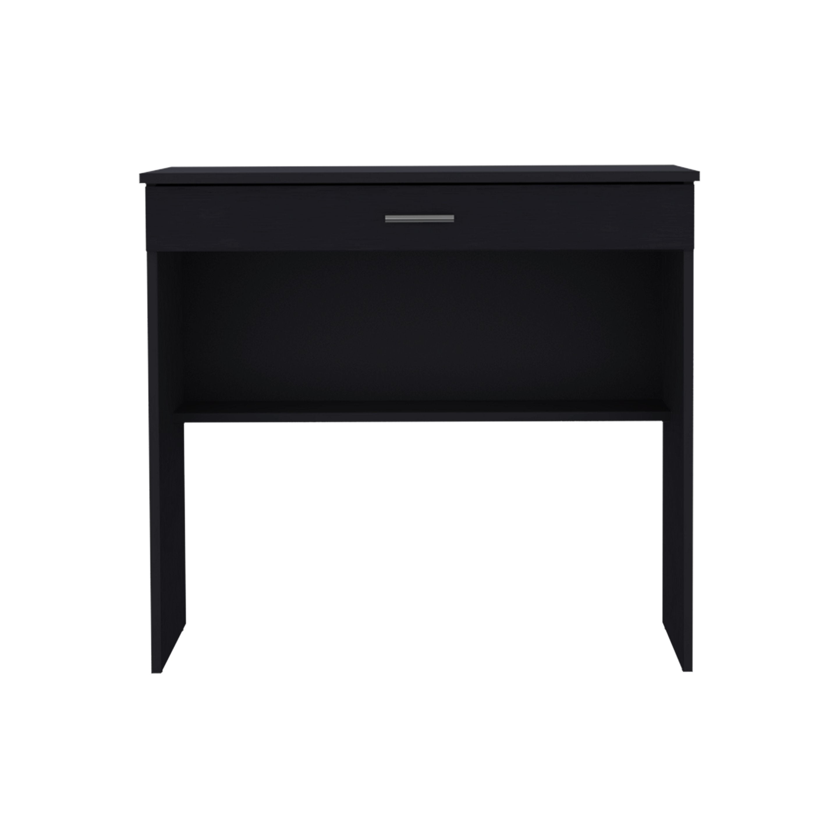 This sleek, compact workstation blends minimalist design with practical storage, making it an ideal choice for home offices, small apartments, or study nooks. Constructed from durable engineered wood and finished in black, it offers a roomy work surface, a discreet storage drawer, and a lower shelf to keep your essentials organized without crowding your space.