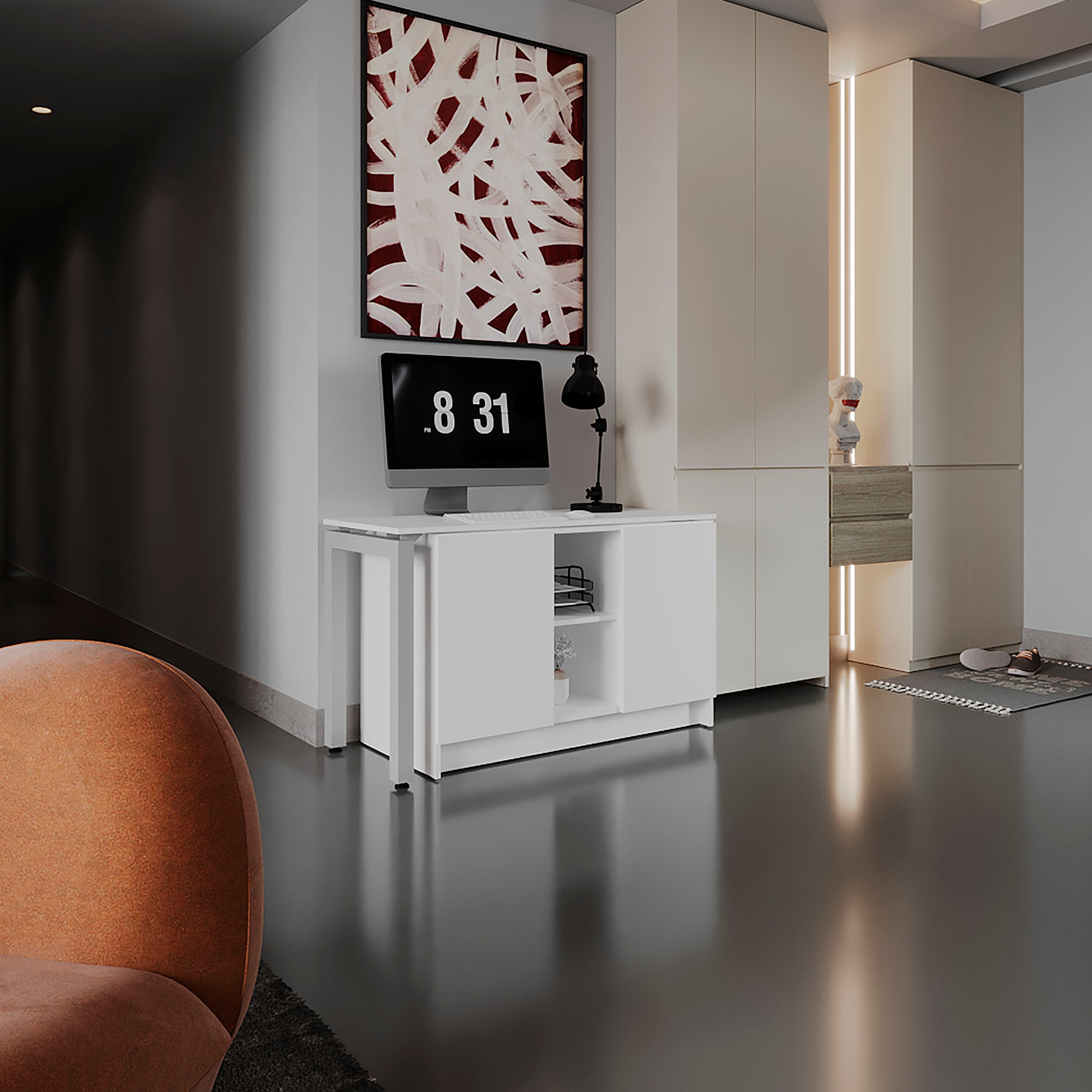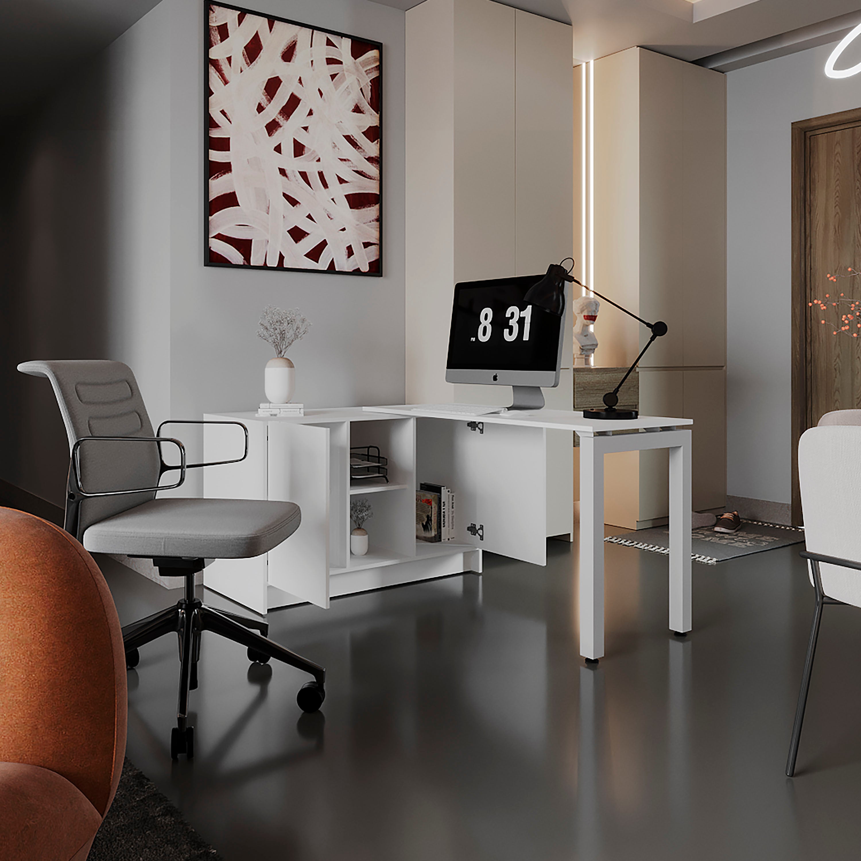 Transform your home office or studio with a versatile workstation designed for productivity and style. This rotatable desk combines a generous work surface, clever storage, and an adjustable layout so you can configure the desk to fit your room and workflow—whether you need a full 72-inch span or a more compact setup.
