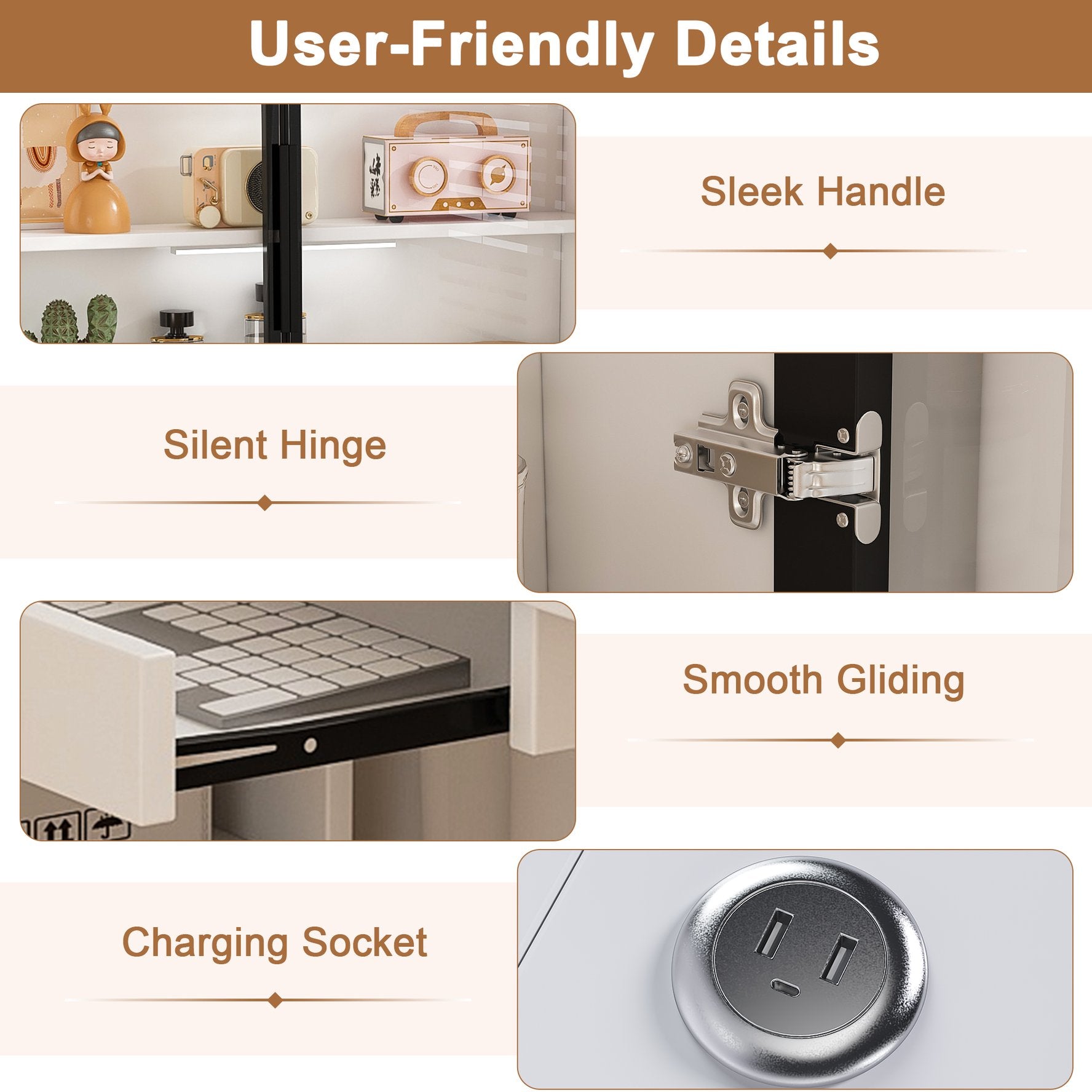 - Integrated Lighting & Connectivity: Built-in LED lights for task illumination and 2 USB charging ports for convenient device charging without extra adapters or cables.