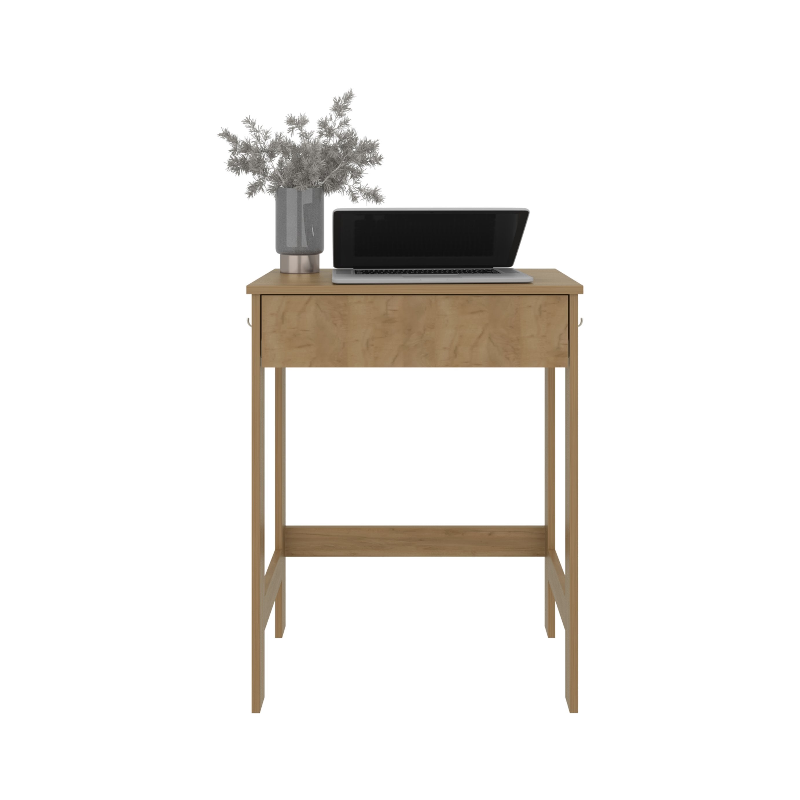 Upgrade your workspace with this sleek, minimalist computer desk in a warm natural oak finish. Thoughtfully designed for small spaces, it combines clean modern lines with practical storage to keep essentials within reach while maintaining a clutter-free surface for focused work or study.