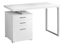 - A modern 48"L computer desk in a fashionable style, with a reversible configuration for left or right setup, perfect to create a functional workspace in your home office.