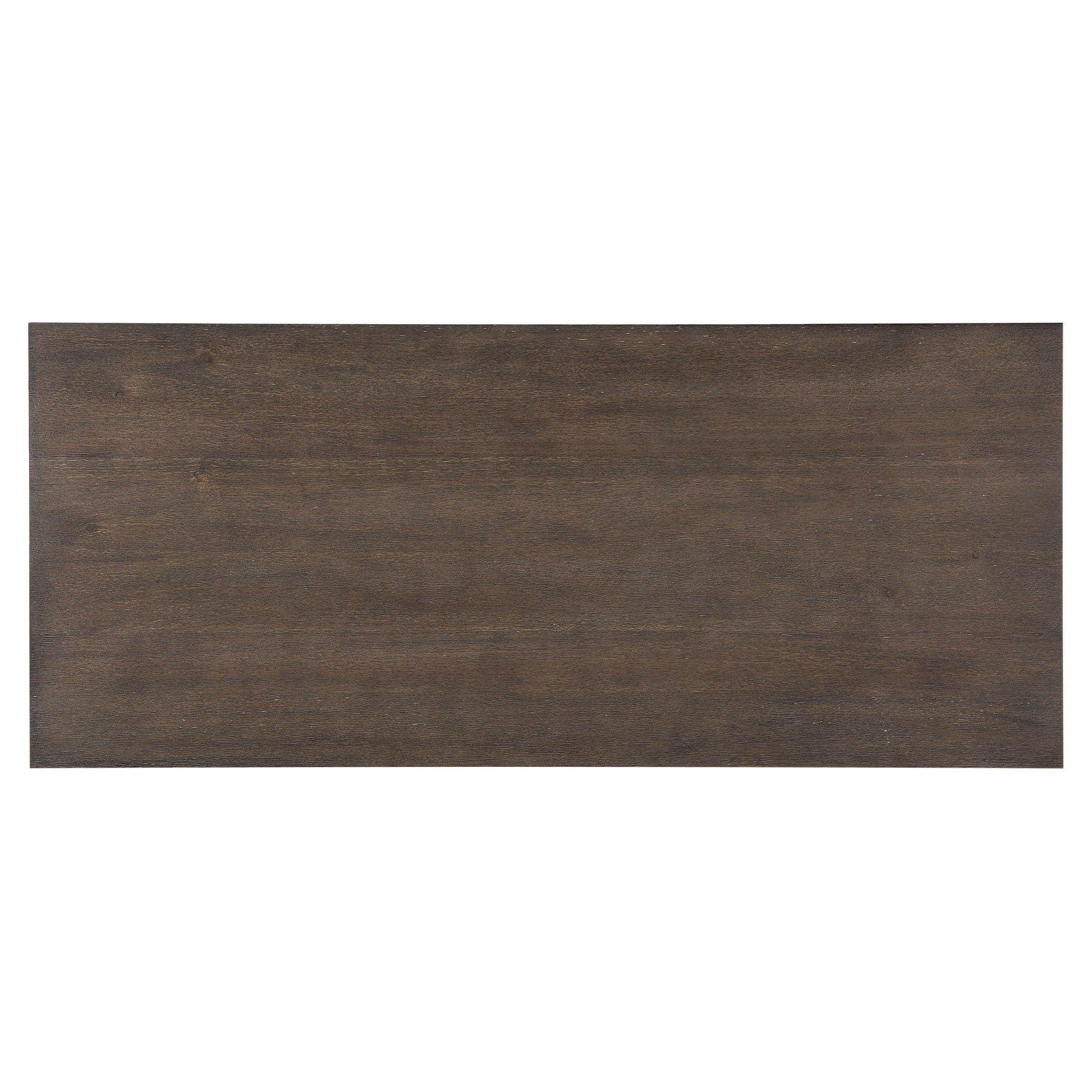 - Durable acacia veneer construction with distressed dark oak finish for textured, antique-style appearance.