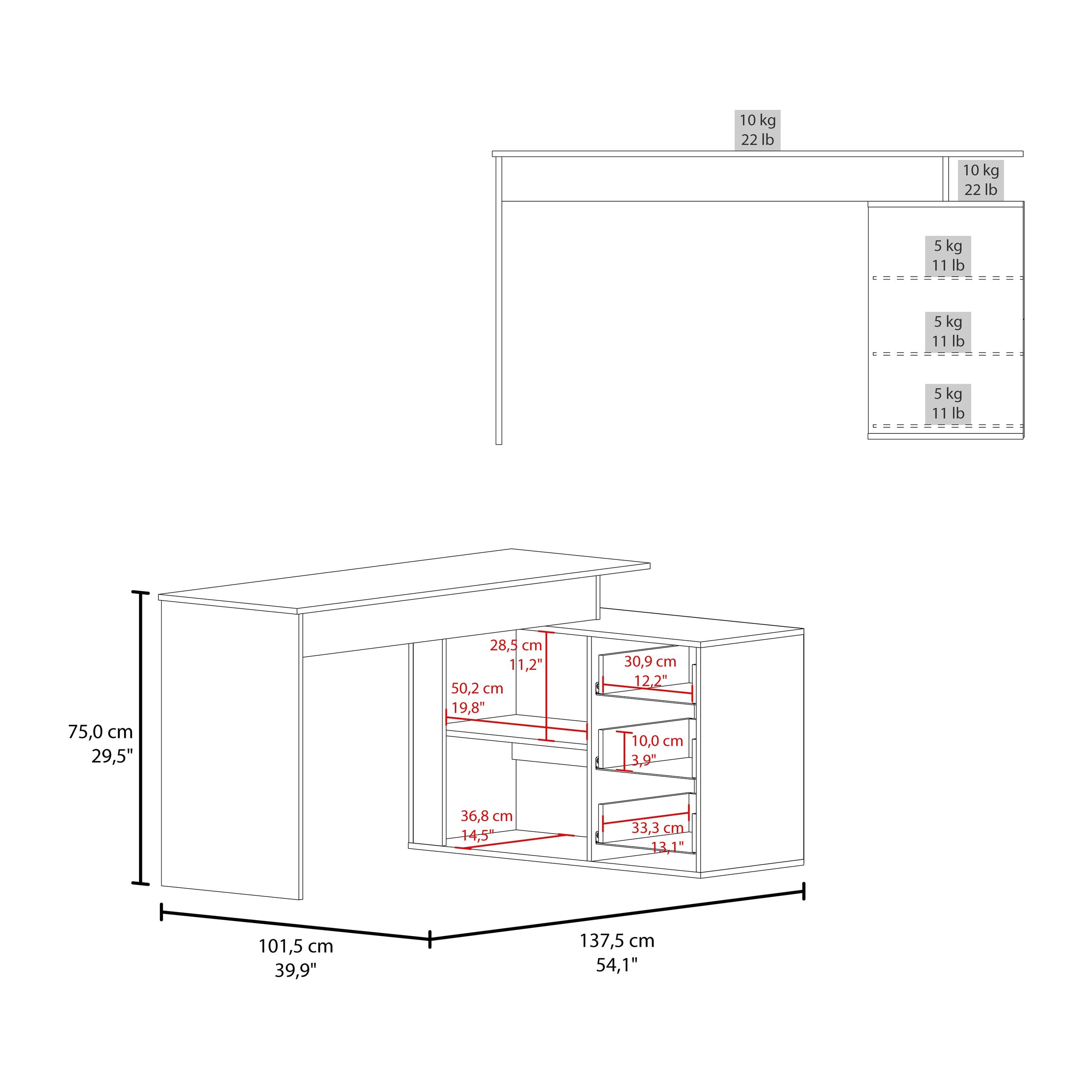 - Storage: Three spacious drawers for files, stationery, and personal items plus two open shelves for books, printers, or decorative accents
