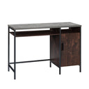 - Industrial style desk with brown finish and metal frame