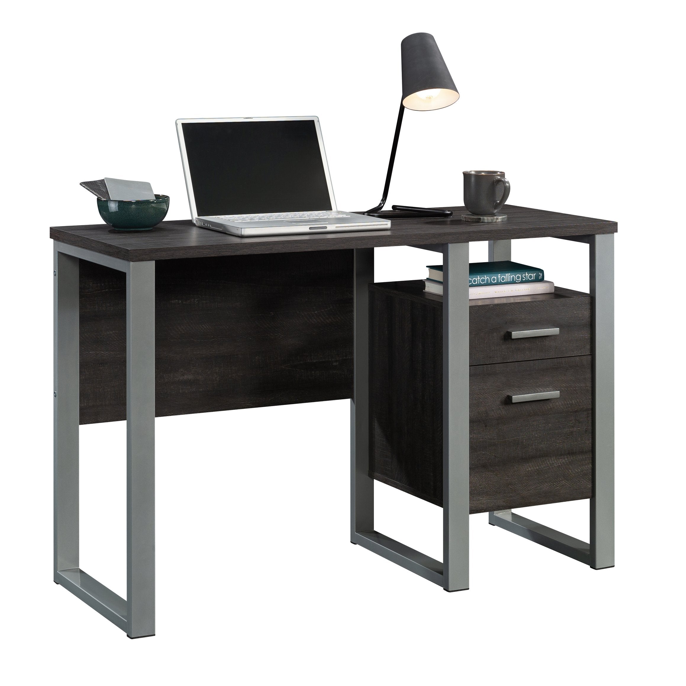 A refined workspace solution in a rich dark walnut finish, this engineered wood desk blends modern functionality with compact design. Ideal for home offices, study nooks, or small apartments, it offers thoughtful storage and a spacious work surface while maintaining a durable, all-around finish that resists daily wear.