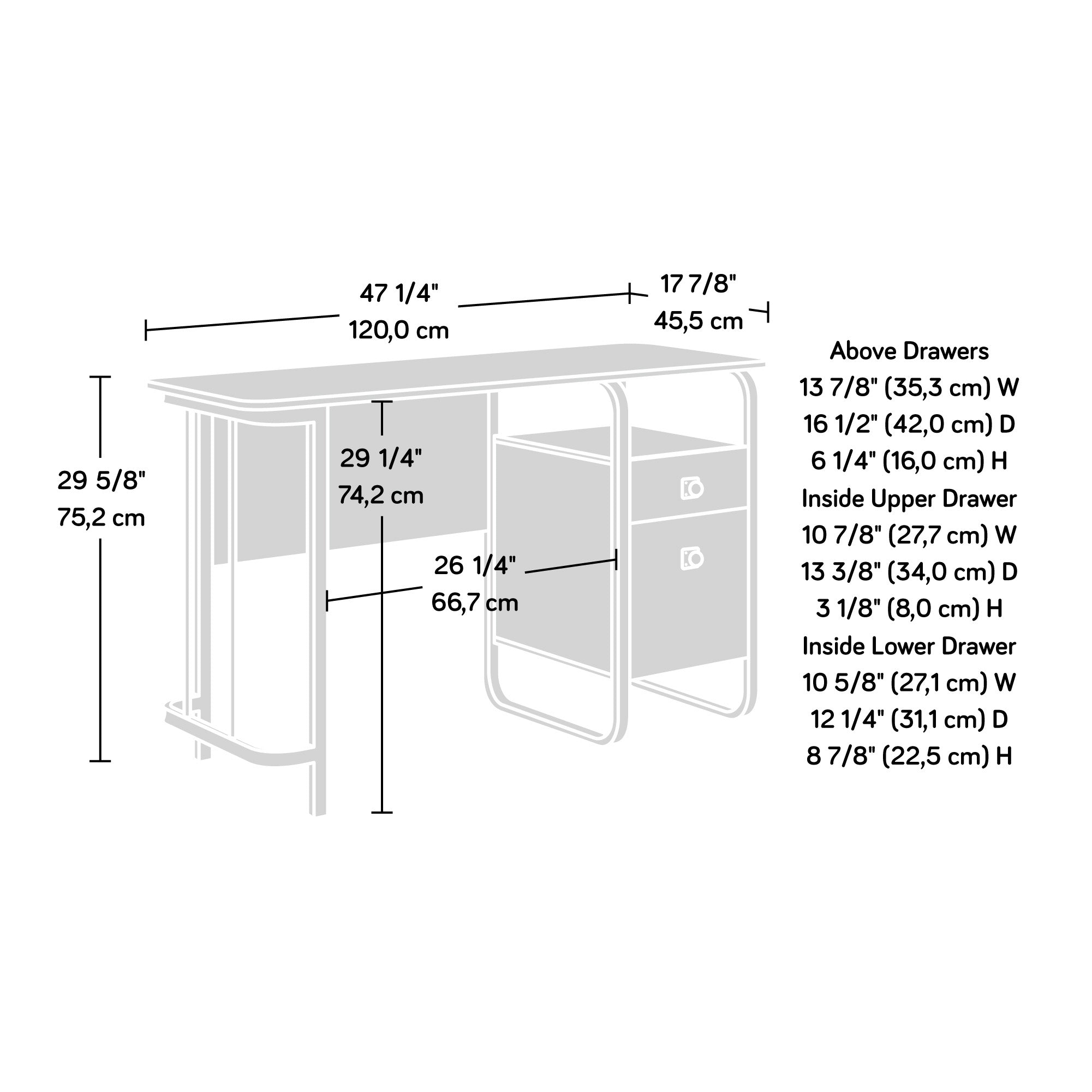 - Storage: Organized storage layout featuring a smooth-glide drawer and a full-extension file drawer for easy access to documents and supplies.
