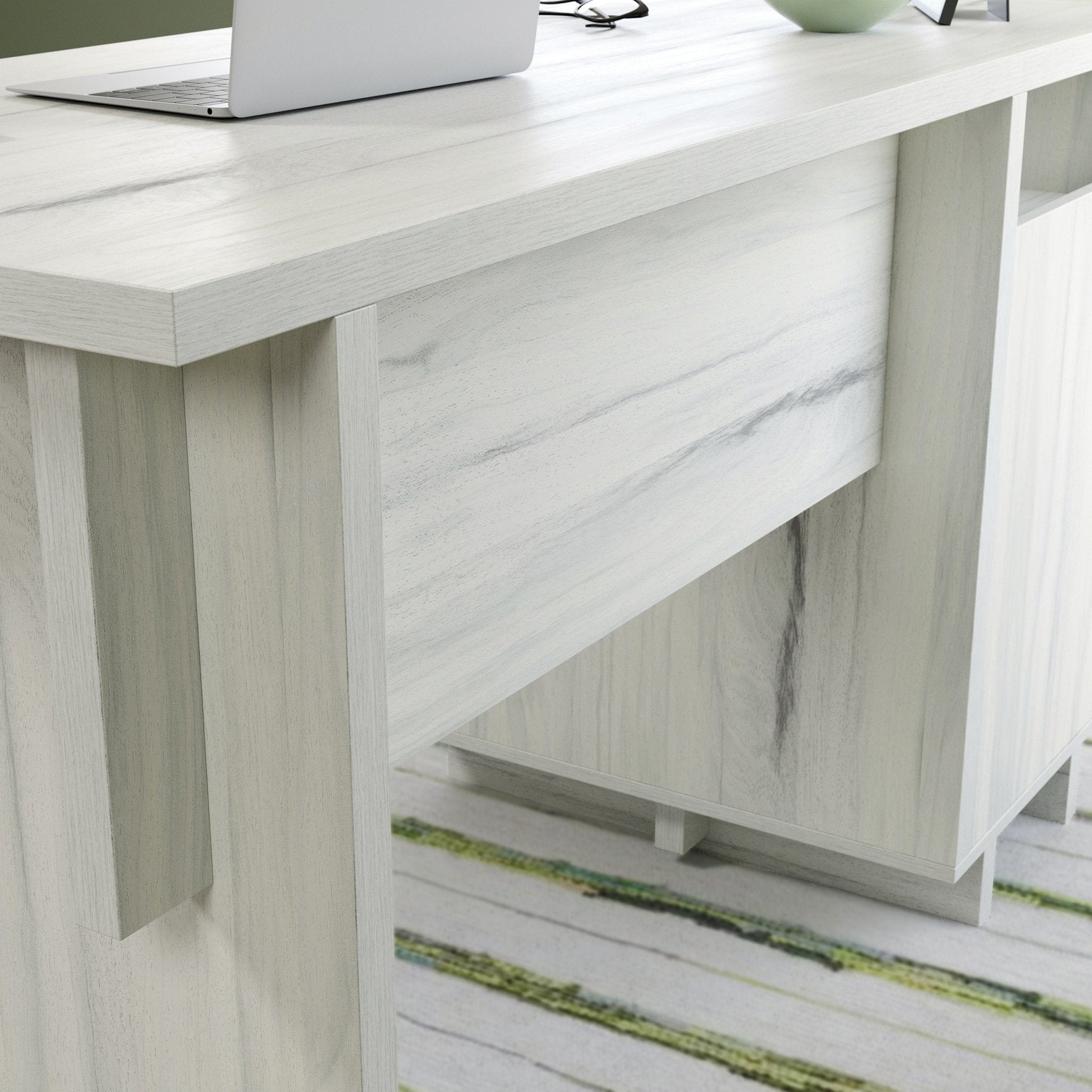 This contemporary white corner desk combines clean modern styling with practical storage and durable construction—ideal for home offices, study areas, or compact workspaces. Thoughtfully designed with smooth-glide drawers and a versatile layout, it maximizes organization and surface area while complementing a wide range of décor.
