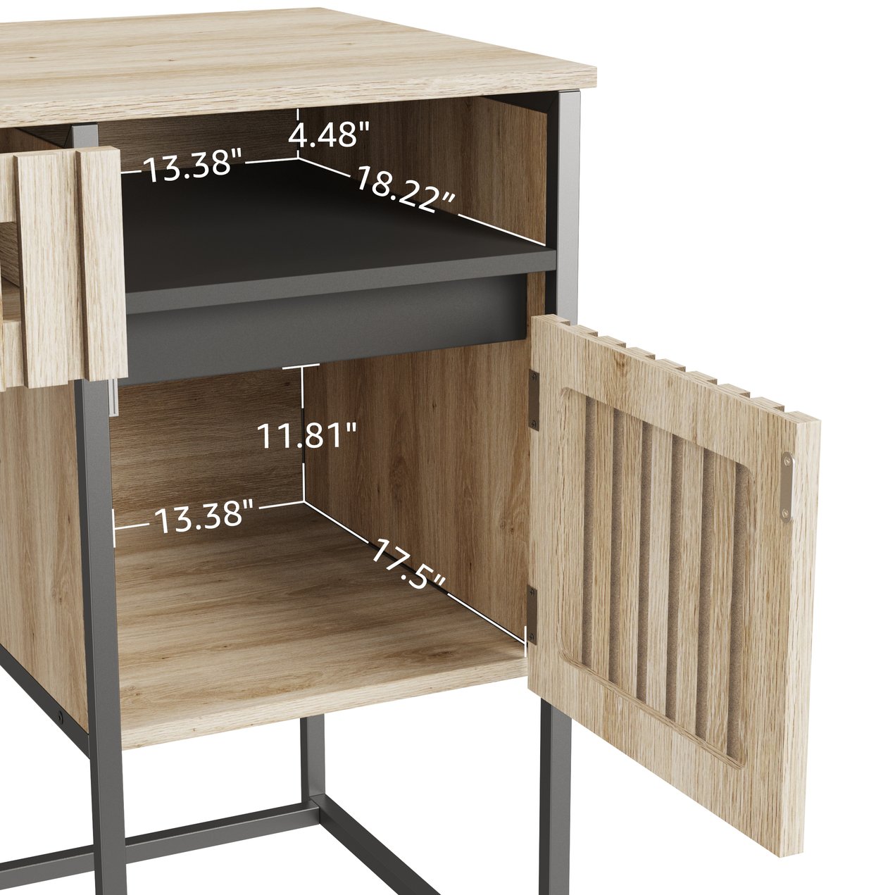 - Unique Slatted Design: Both the drawer fronts and the cabinet door showcase a chic slatted design, adding a touch of modern sophistication to the desk. This subtle design detail enhances the overall aesthetic, making the desk a stylish focal point in any room.