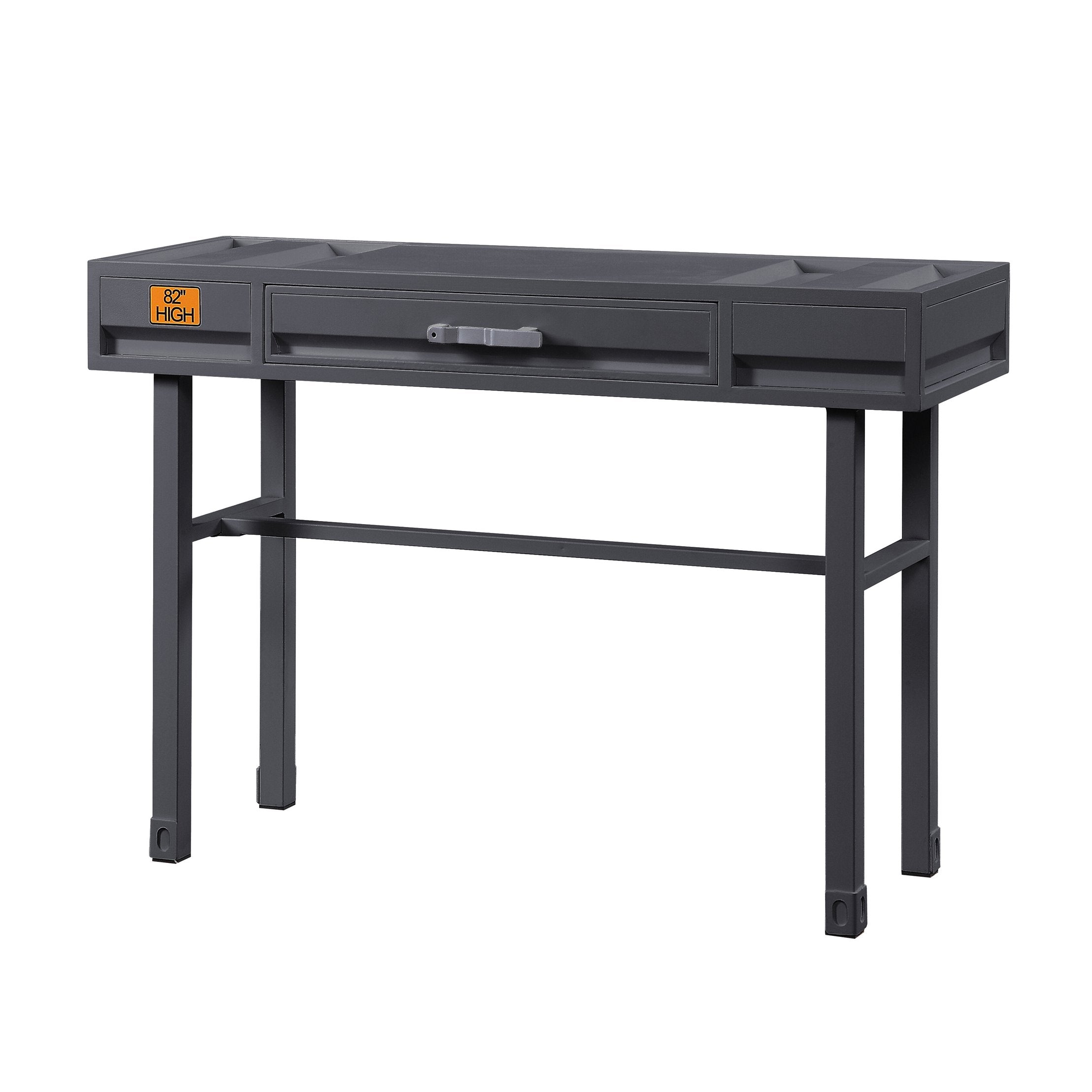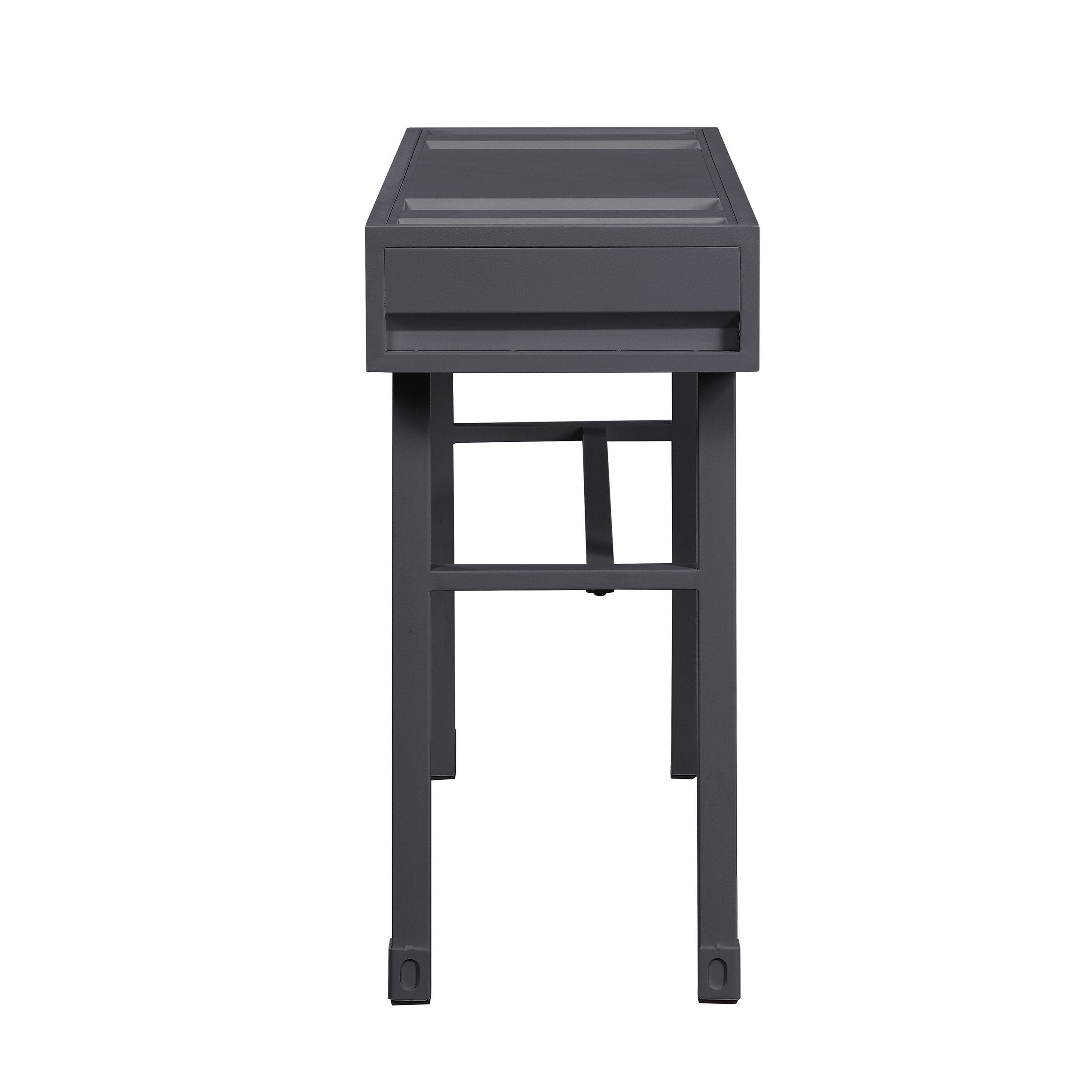Give your workspace an industrial edge with this gunmetal writing desk — a sleek, cargo-inspired piece that blends rugged materials with thoughtful functionality. Its recessed panel styling and compact footprint make it ideal for home offices, studios, or any room that needs a distinctive, utilitarian focal point.