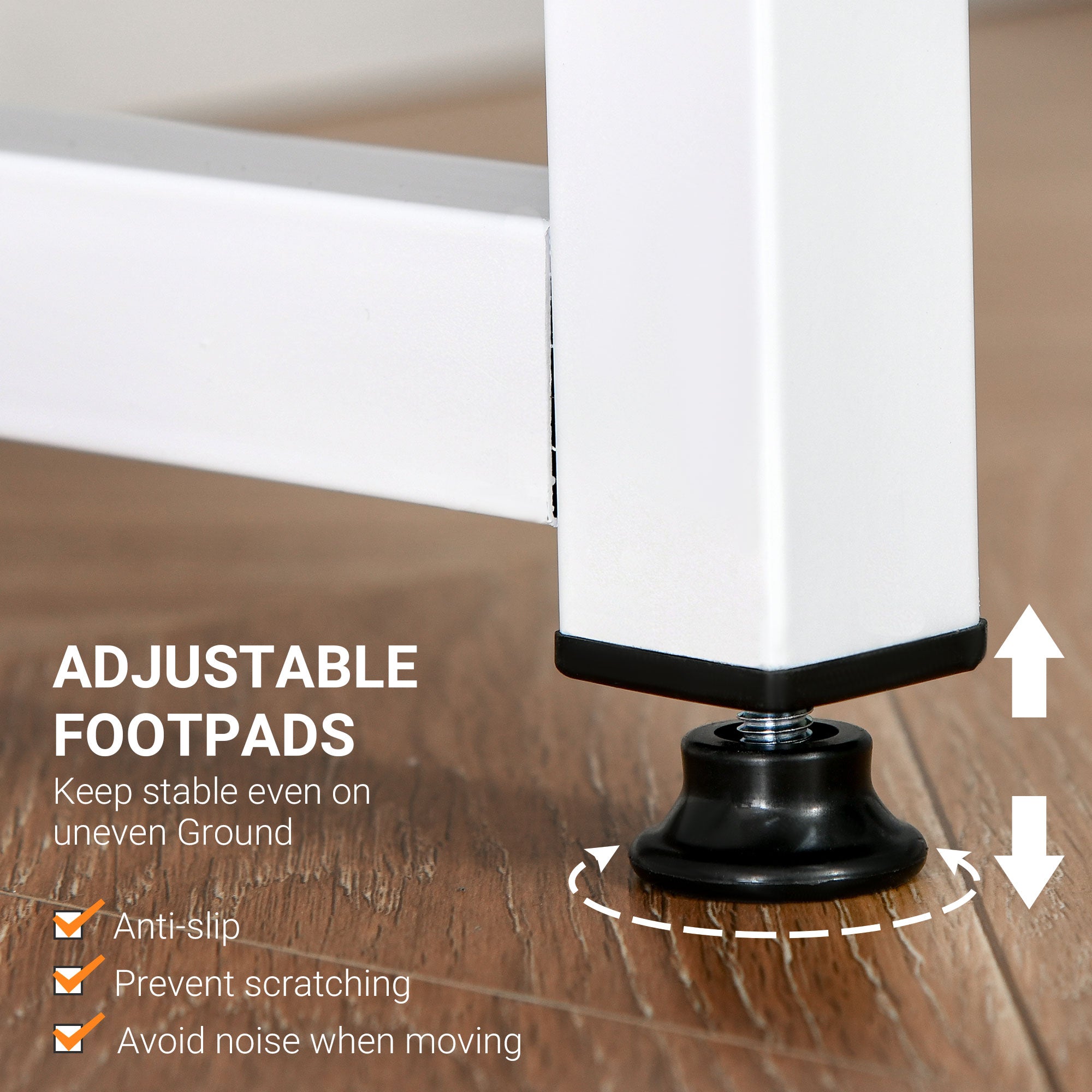 - Floor protection & leveling: Adjustable footpads help level the desk on uneven floors and prevent scratches.