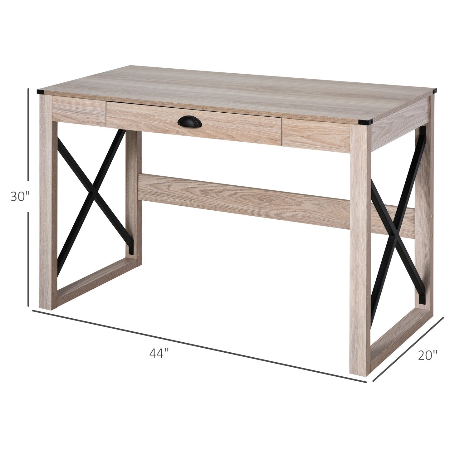 Refresh your workspace with this rustic farmhouse desk that blends sturdy construction and thoughtful storage into a compact, stylish package. The HOMCOM 44-inch writing desk features a spacious desktop, an easy-glide storage drawer, and an X-frame metal base for stability—ideal for home offices, study corners, or multi-use rooms where both form and function matter.