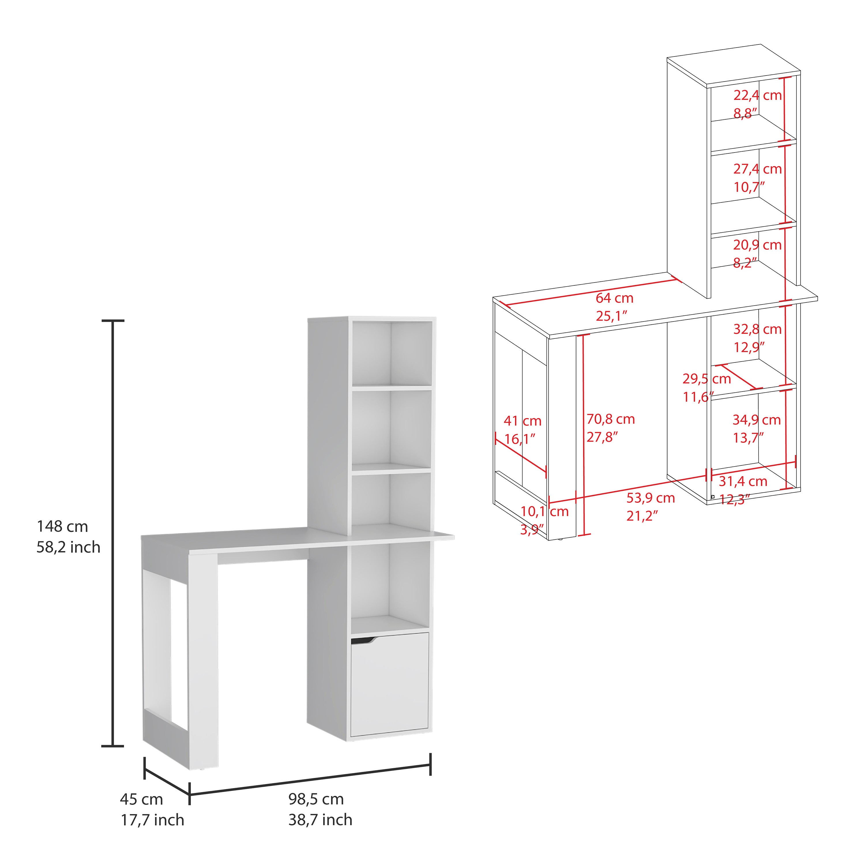 - Integrated 4-tier bookcase for storage of office essentials and decorative items.