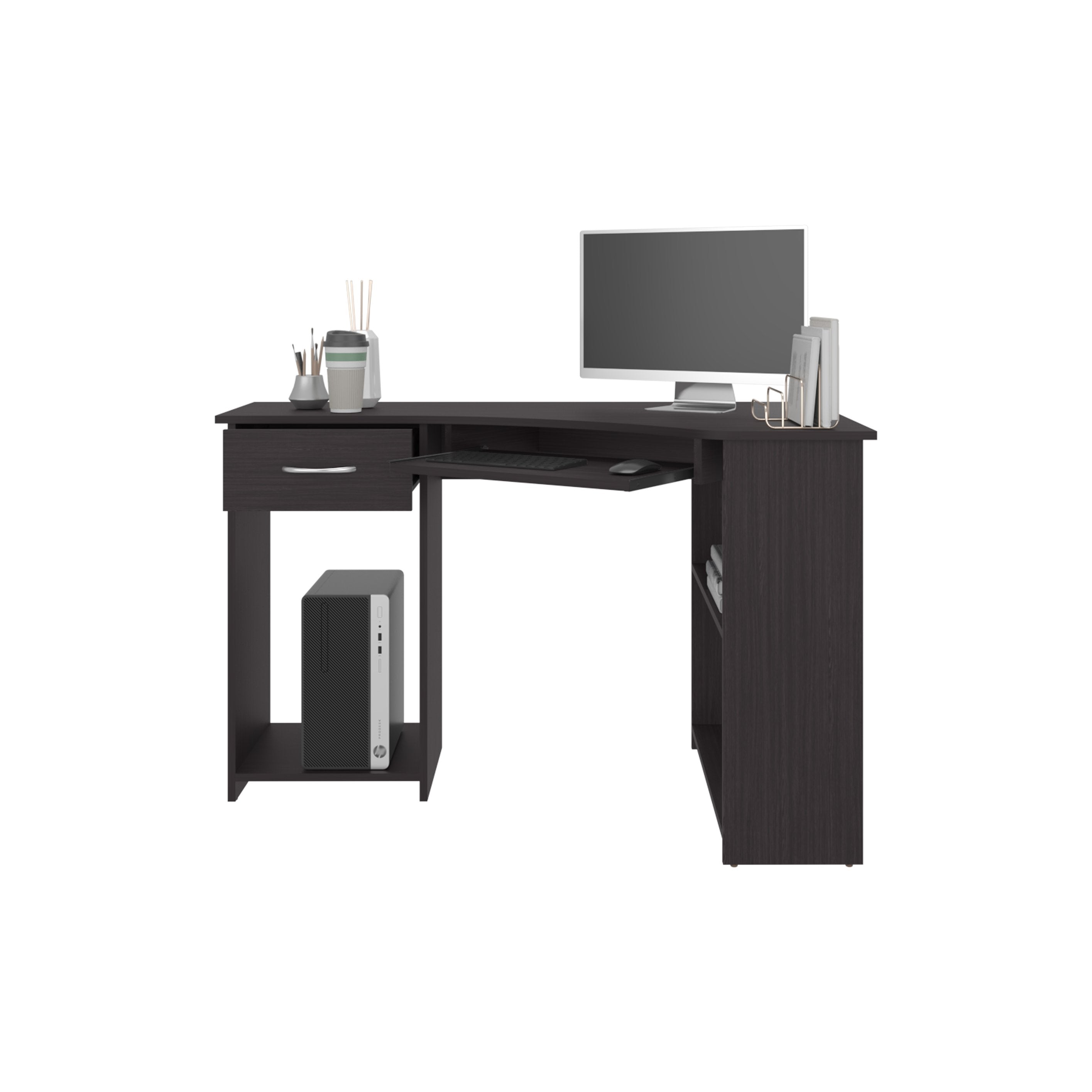 Create a productive corner workspace with the Jasper Corner Desk — a compact, L-shaped solution that turns unused corners into an organized and stylish work or gaming station. Finished in Black with Dark Walnut accents, this desk blends contemporary aesthetics with practical storage to maximize small rooms, studios, or home office setups.