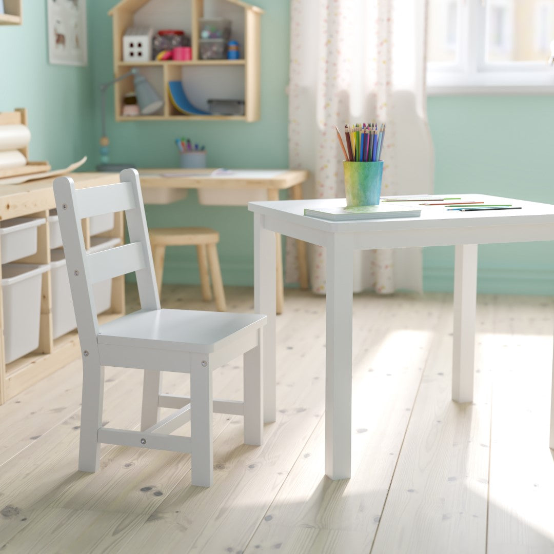 - Solid Wood Kids Table Set: 1 Square Table and 2 Chairs