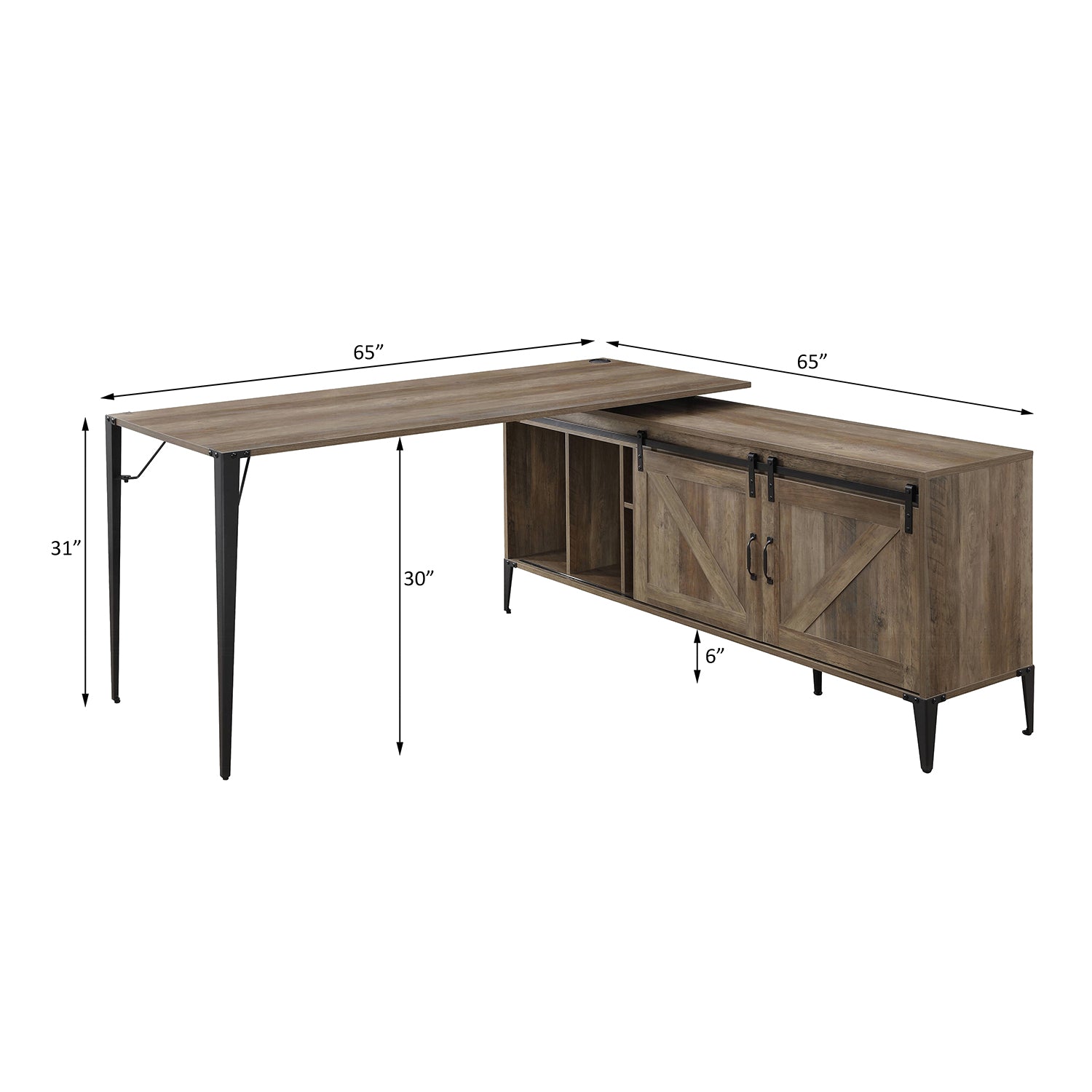 Create a warm, functional home office with this L-shaped writing desk that blends rustic charm and industrial detail. Designed to maximize workspace and storage while fitting neatly into a corner, the desk offers a comfortable layout for writing, computing, and organizing everyday essentials—ideal for home offices, studios, or study nooks.
