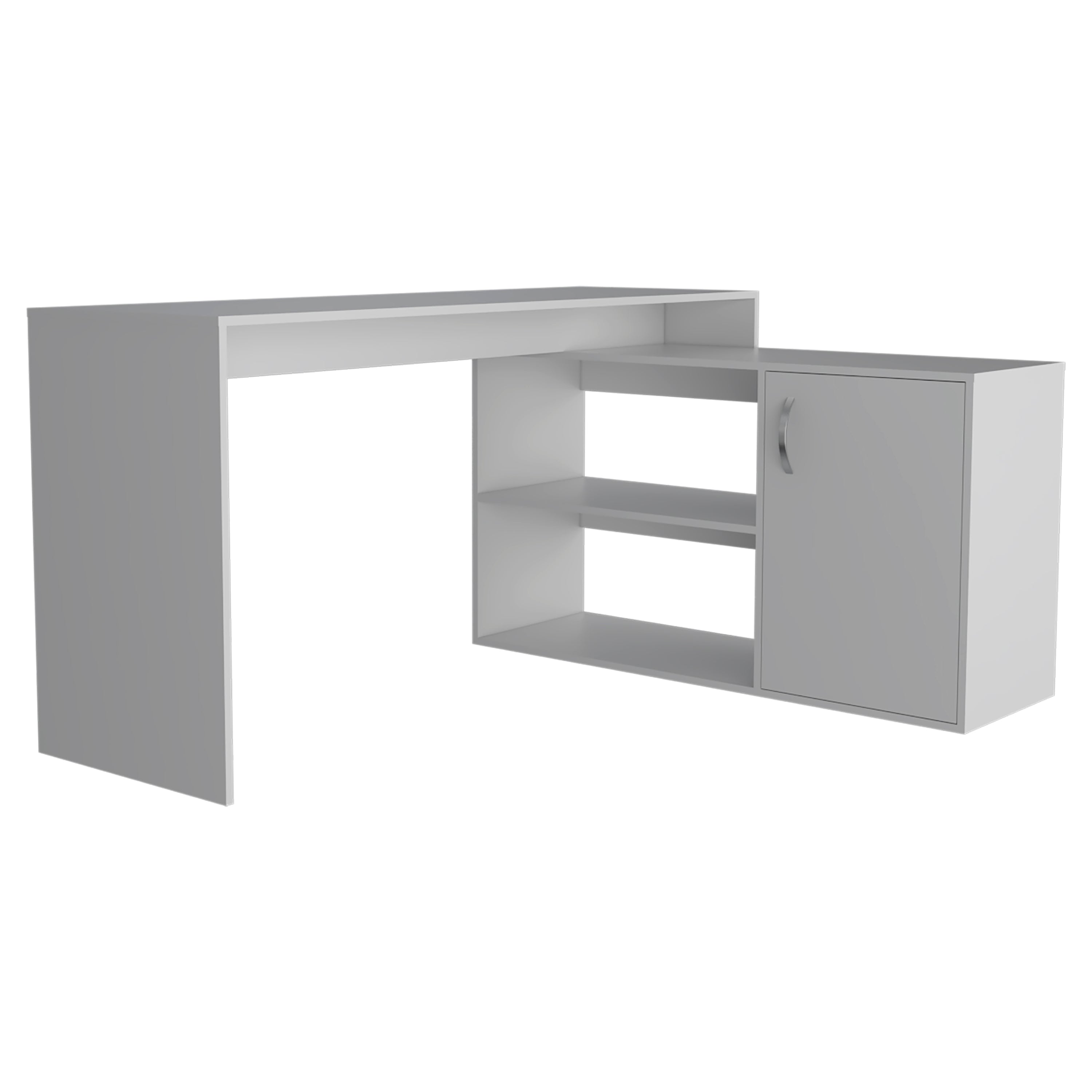Create a bright, efficient workspace with this L-shaped office desk designed for corner placement and maximum surface area. Its clean white finish and sturdy particle board construction provide a modern, durable solution for home or small office use, offering organized storage and generous legroom to keep your workday comfortable and clutter-free.