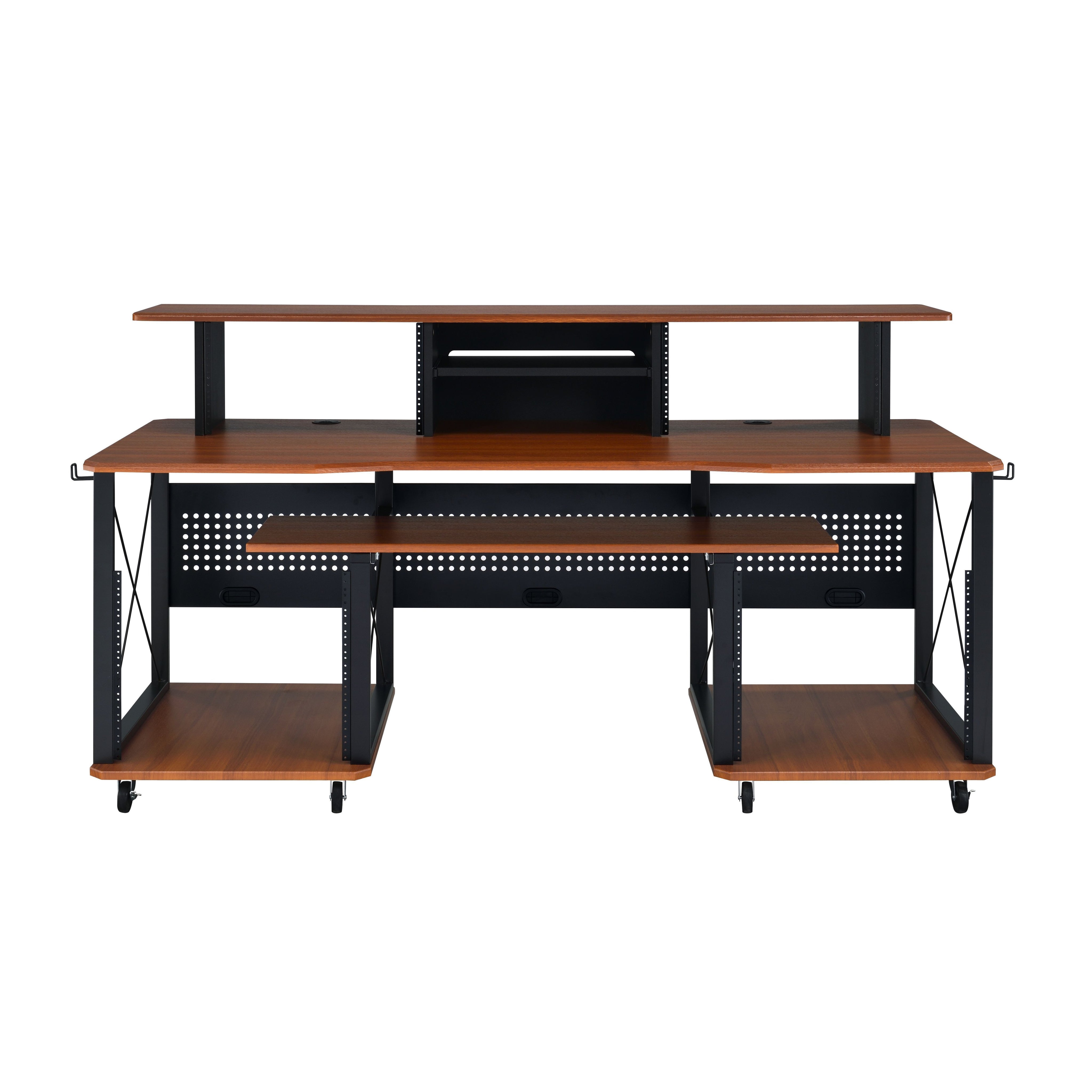 Organize and elevate your music workspace with a versatile, mobile desk designed specifically for keyboardists. Finished in cherry and black synthetic wood, this music desk provides a spacious surface, dedicated storage compartments, and built-in cable management so you can focus on playing and producing without clutter.
