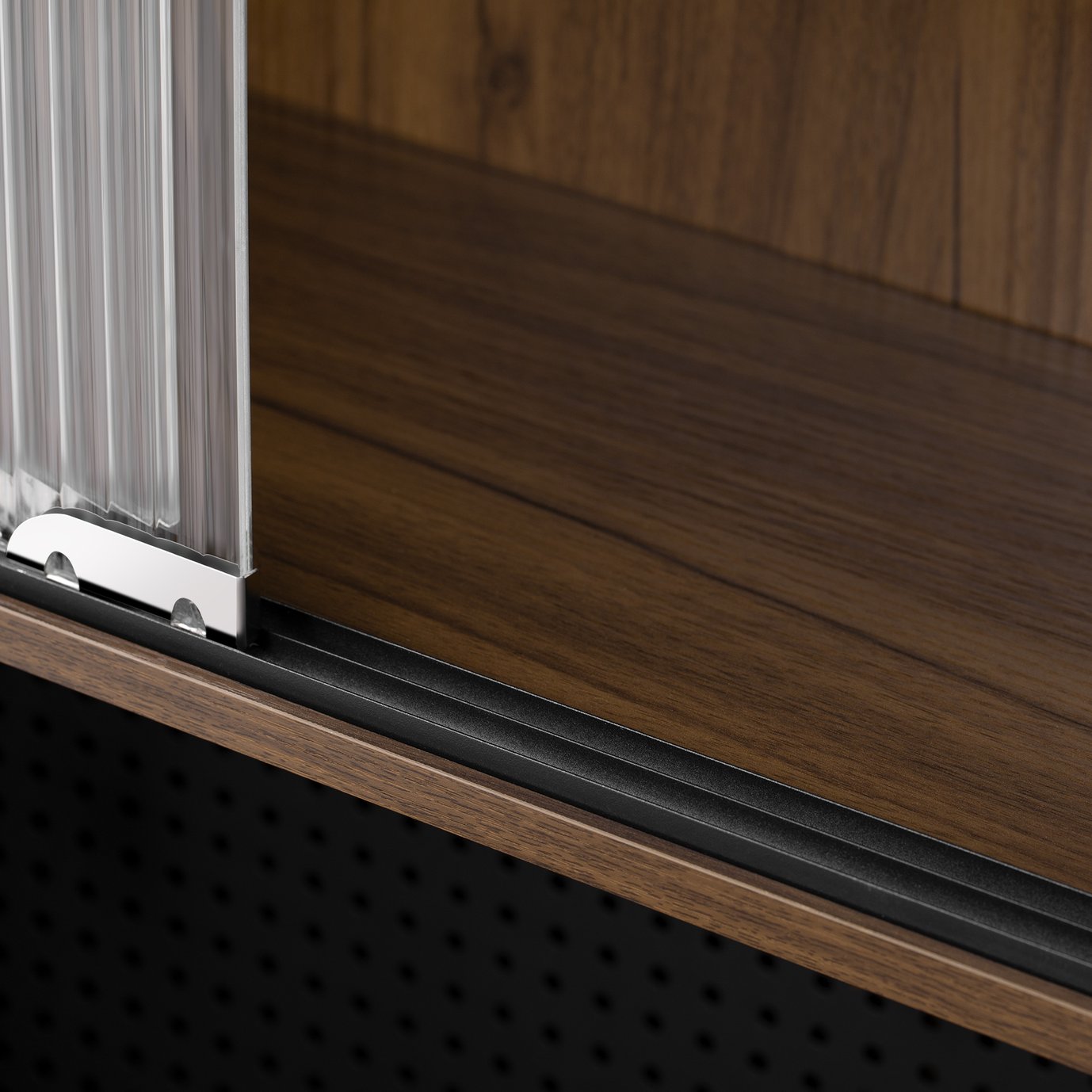 - Hutch & storage: Sliding glass doors, shelving, and a 14.5” x 22.4” (37 x 57 cm) pegboard provide flexible organization for books, decor, peripherals, and office supplies