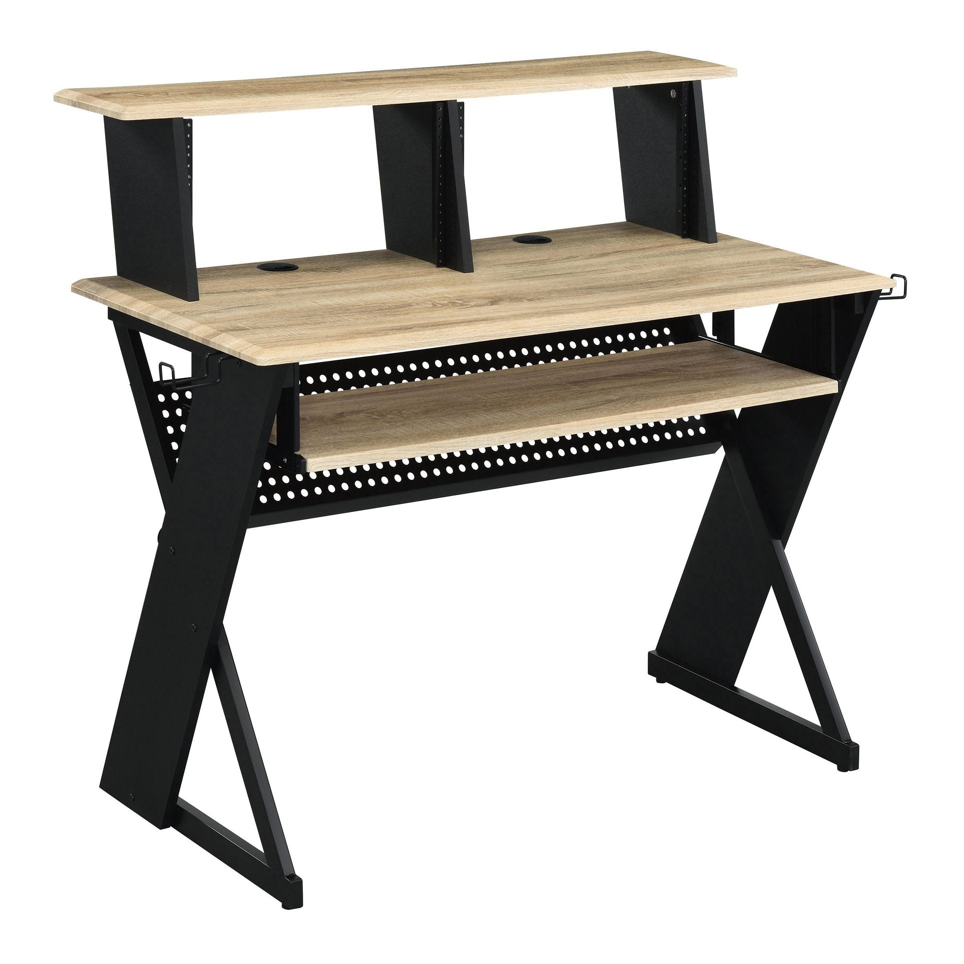 - Includes a built-in keyboard tray for ergonomic typing position and to free up desktop space, enhancing comfort and efficiency during music sessions