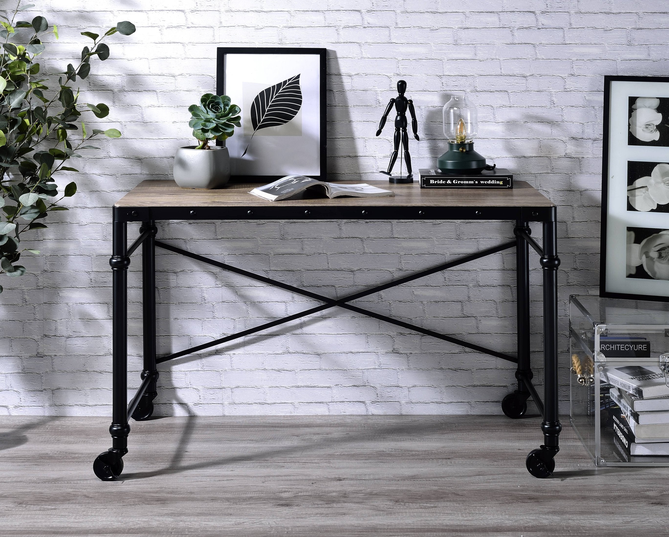 Upgrade your workspace with the Oklarth Rustic Oak & Black Finish Writing Desk — a streamlined, industrial-inspired desk that balances rugged materials with a clean, minimalist surface. Its compact footprint and mobile design make it ideal for home offices, studios, or dorm rooms where style and flexibility matter.
