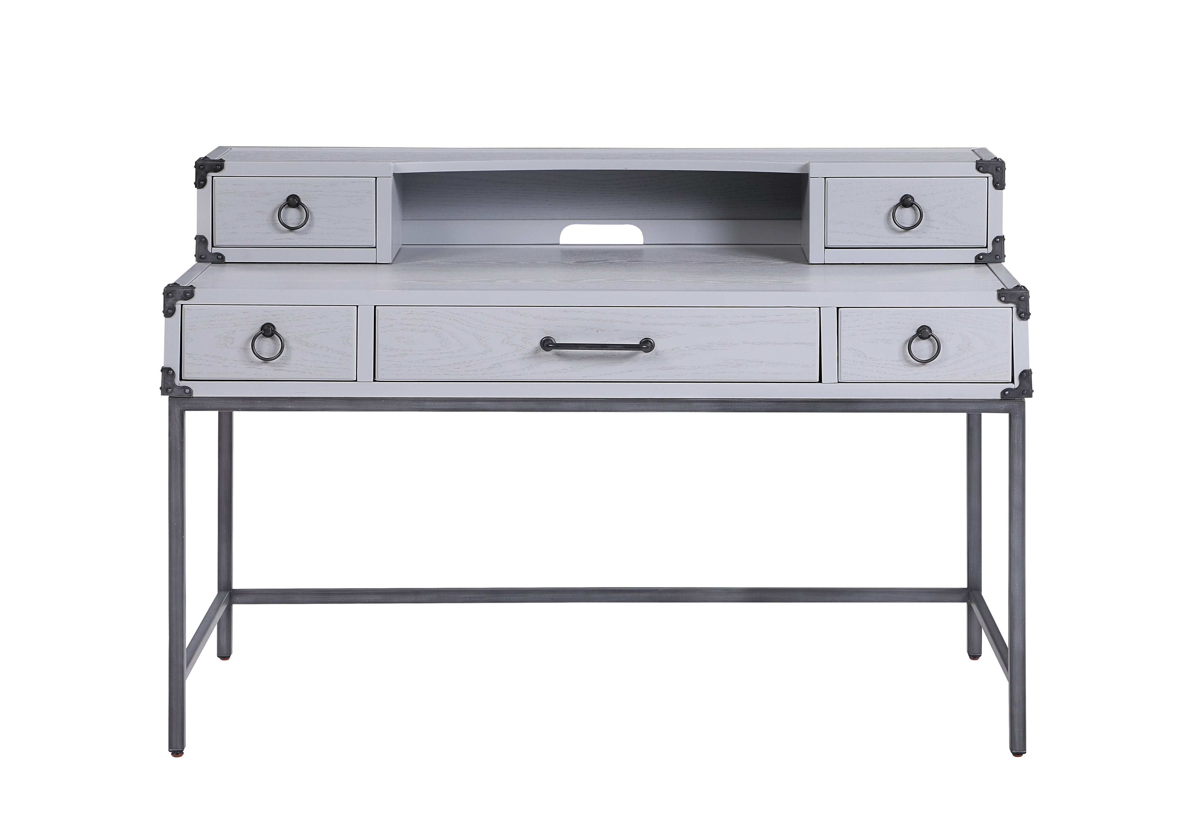 Give your workspace a clean, modern upgrade with this gray finish writing desk — a balanced blend of contemporary style, durable construction, and practical storage. Designed to accommodate focused work or study, it offers smooth drawer operation, solid support, and generous kneeroom for comfort.