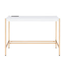 - Wooden Top: White Finish•Metal Base: Gold Finish (Open Base)