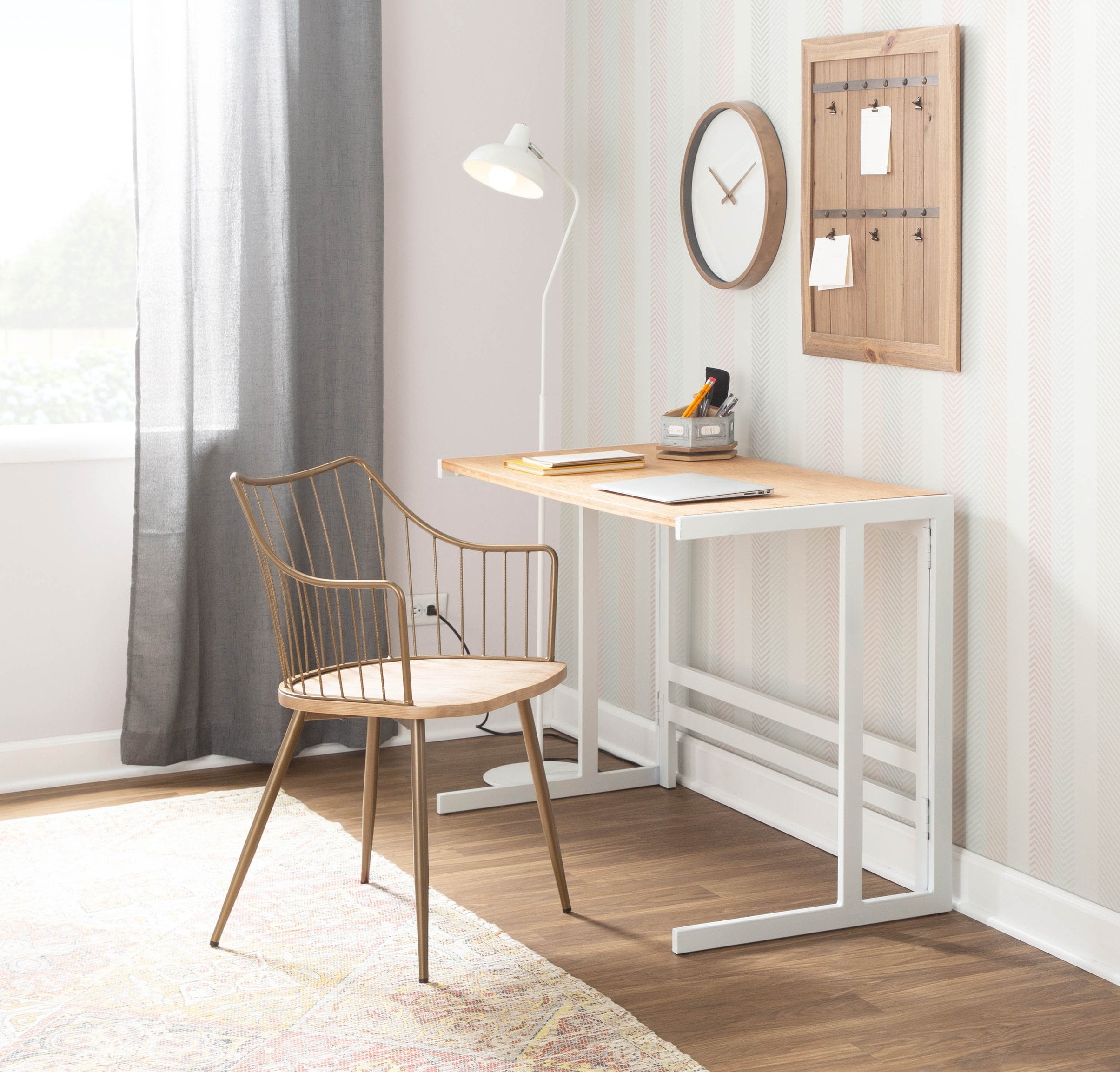 Give your workspace a clean, industrial look with this Roman office desk, blending warm natural bamboo with a crisp white metal frame. The streamlined design fits modern, minimalist, and industrial interiors while providing a durable, stable surface for everyday work, study, or creative projects.