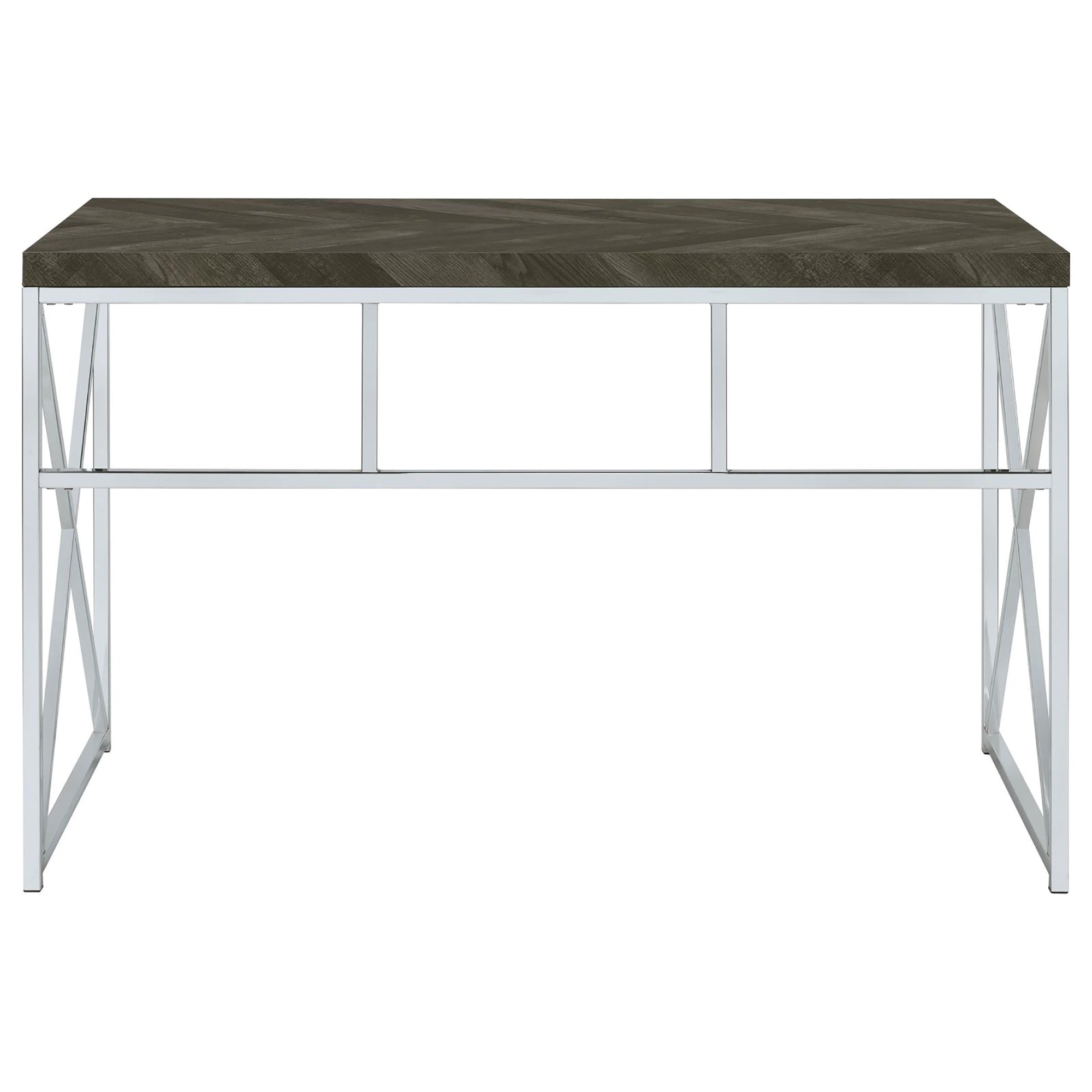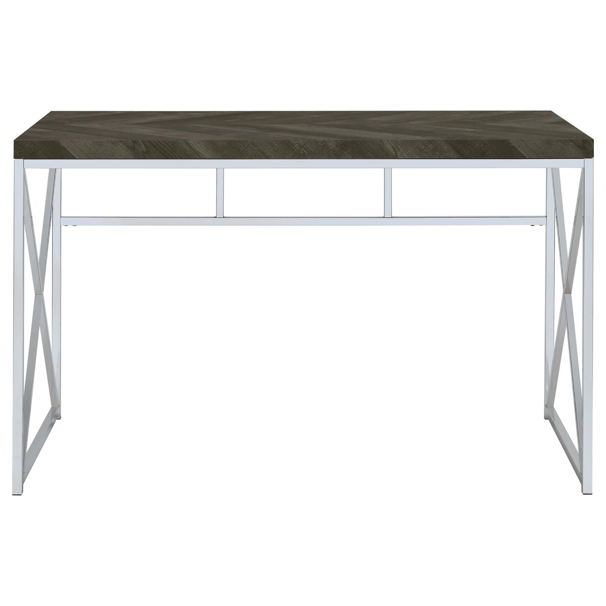 Elevate your workspace with a stylish blend of modern lines and rustic texture. This writing desk pairs a chic grey herringbone surface with chrome accents for a balanced look that complements contemporary and transitional interiors. Designed for everyday use, it offers a durable construction and a streamlined silhouette that keeps your office organized and visually appealing.