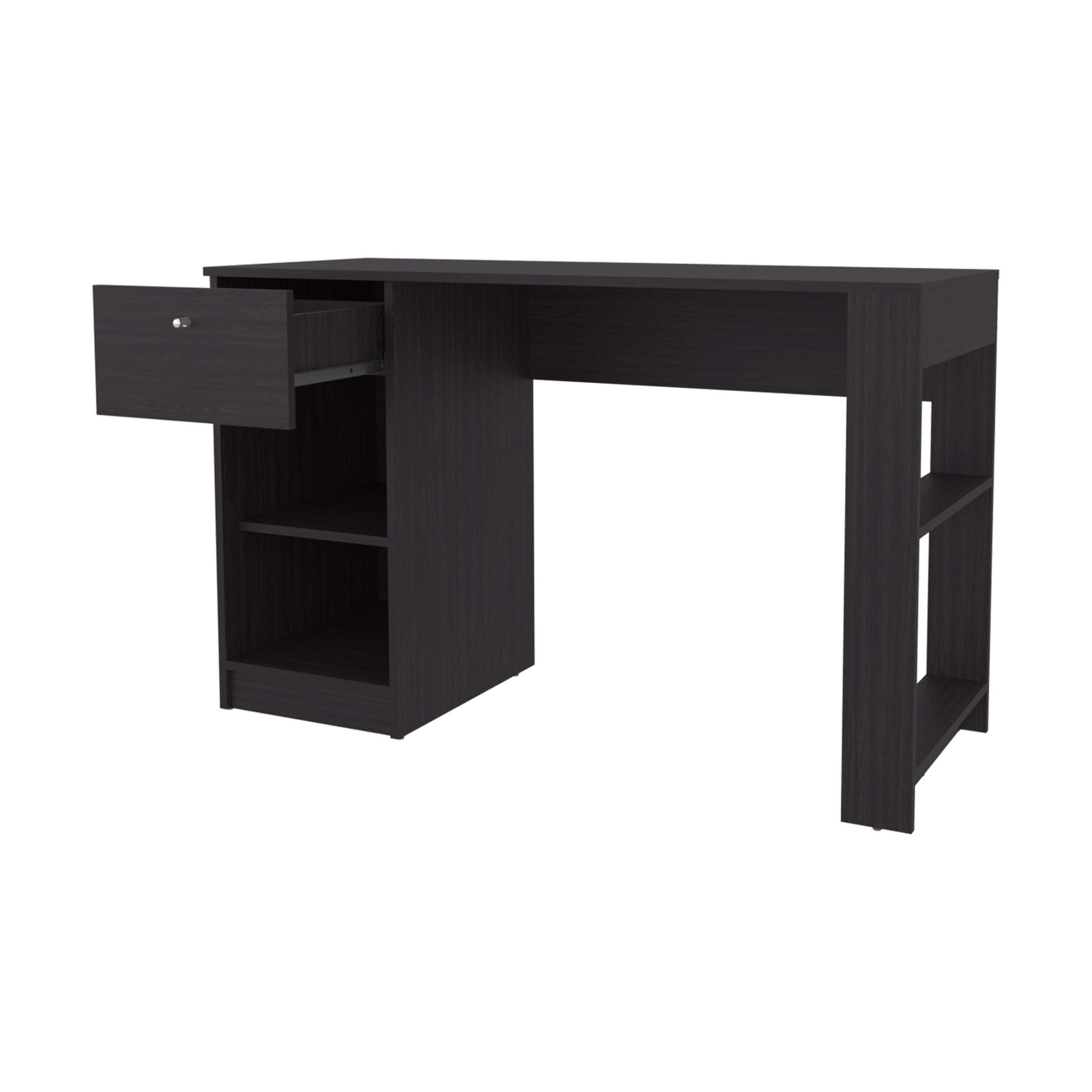 - This desk features a spacious drawer for hidden storage and two open shelves, providing ample space to organize your books, documents, and decorative items efficiently