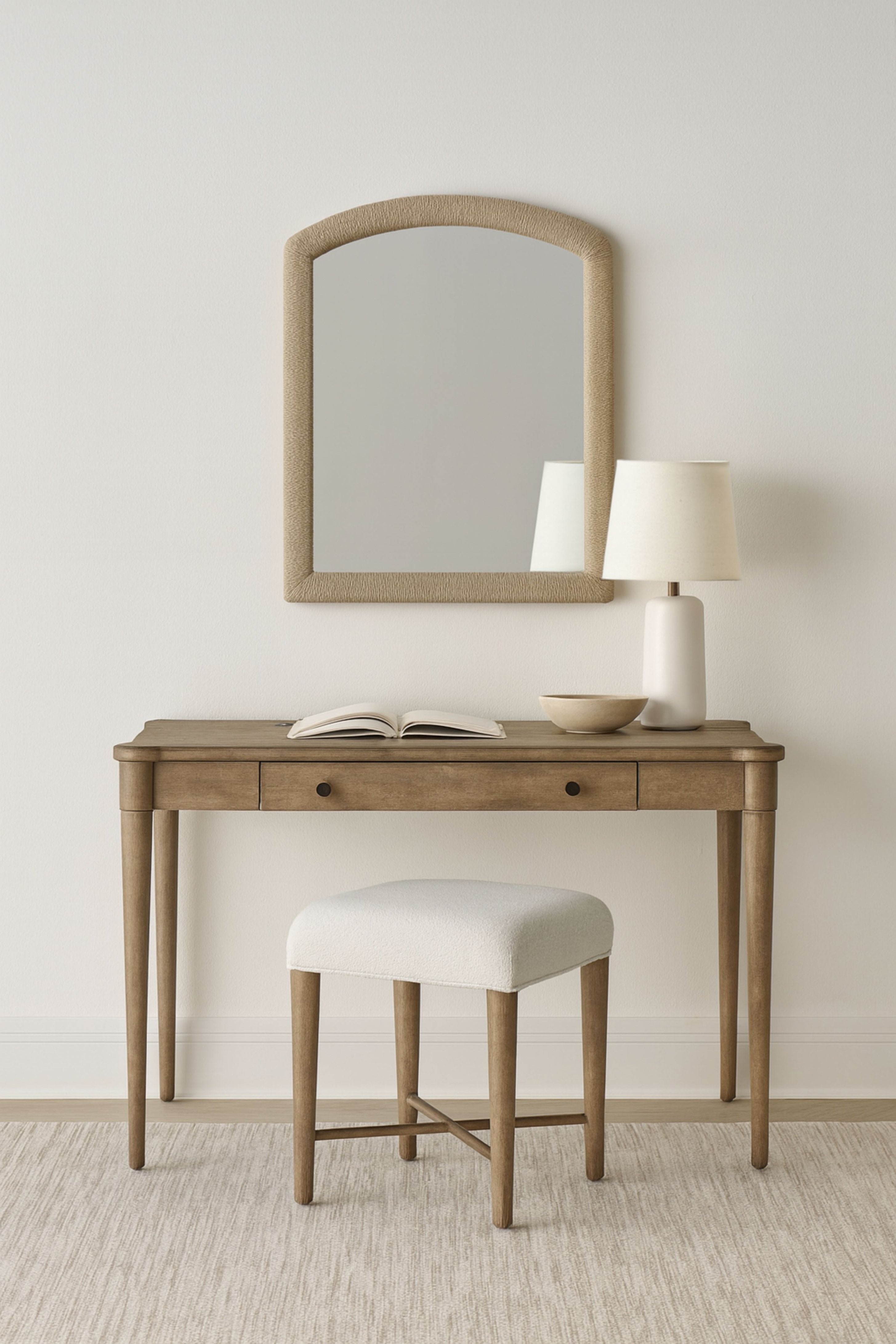 A streamlined, mid-century inspired writing desk in a warm sand finish that blends natural wood character with practical workspace features. Designed for small offices, living rooms, or bedrooms, this desk offers a clean silhouette and thoughtful details—like a flip-down drawer and built-in wire management—to keep your workspace tidy and comfortable.