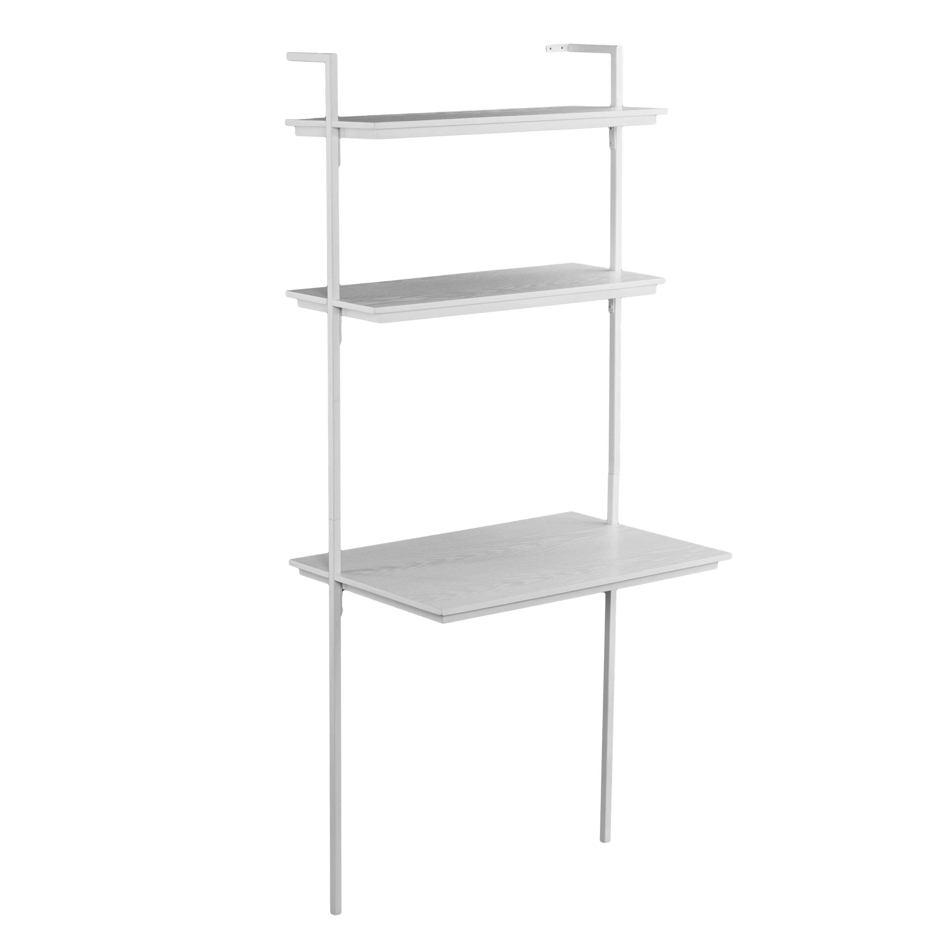 - Feature 1: Multipurpose floating desk w/ hutch-style shelves